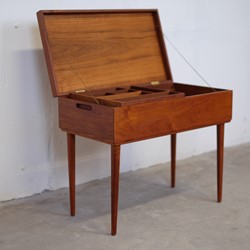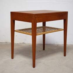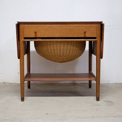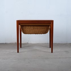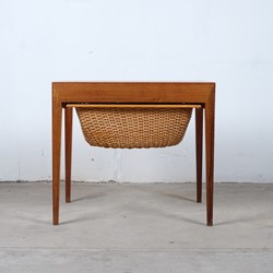 Hans J. Wegner sewing table. Model: AT-33. Design 1959. Solid teak and wicker.