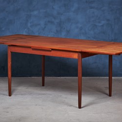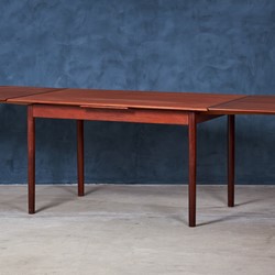 Kai Winding dining table in teak with drop leafs and two drawers.