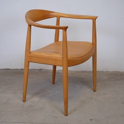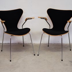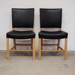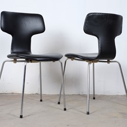 This stunning chairs are re-upholstered with real black leather. We have a lot more model 31 chairs in storage. It will be possible to get at set of up to 25+ chairs if you wish.
