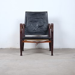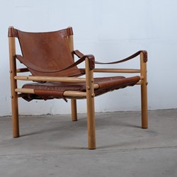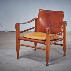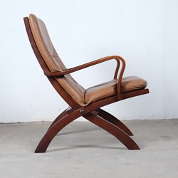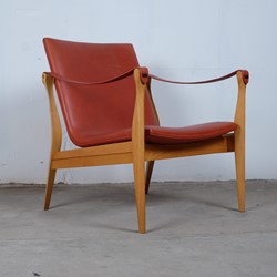 Safari chair by Aage Bruun and Son, Denmark, in beechwood and tan / cognac natural leather.