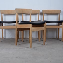 This beautiful set of four Danish dining chairs, designed by Henning Kjaernulf in the 1960s is one of his great classics, which now has been placed in the same home since they were bought in 64. They want to go on new adventure and live on and even longer, with new life in terms of a new refurbished and oiled frame and new leather on the seats.