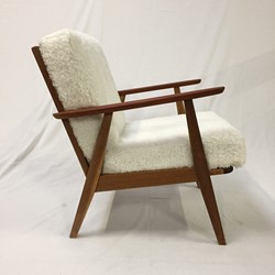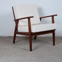 Danish modern, 1960s, easy chair with a solid teak frame, upholstered in white fabric. Very simple, light and elegant chair with a great seating comfort. This beautiful chair would be a great addition to any modern environment.