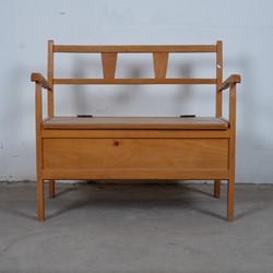 A great detail is that you can turn around the seat and it will act like a coffee table. The stool has some age related wear because of use. But overall in good vintage condition.
