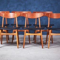 Set of 6, Dining chairs in oak and teak by Hans J. Wegner, #CH-30, 1960s, Denmark