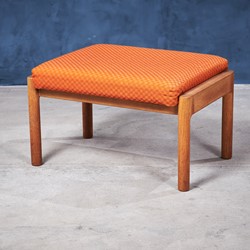 Kurt Østervig stool in solid oak with orange quality fabric in good vintage condition. The stool is made in the 60s era of Danish design. This beautiful stool would be a great addition to any modern environment.