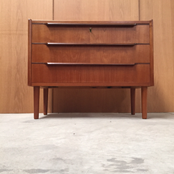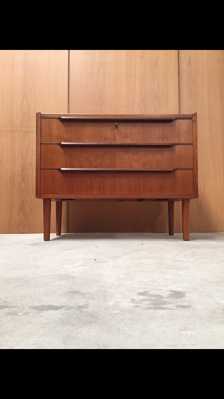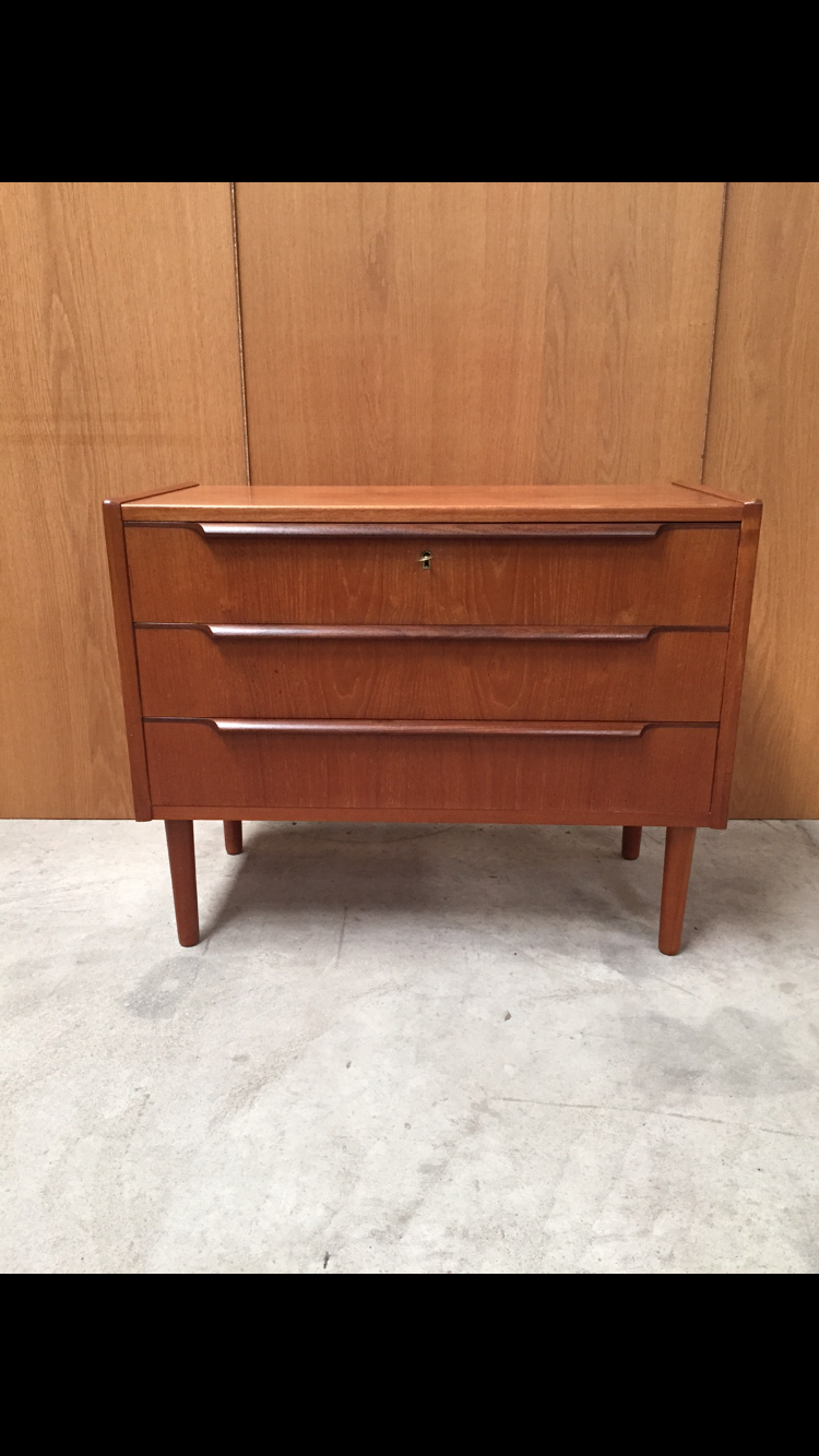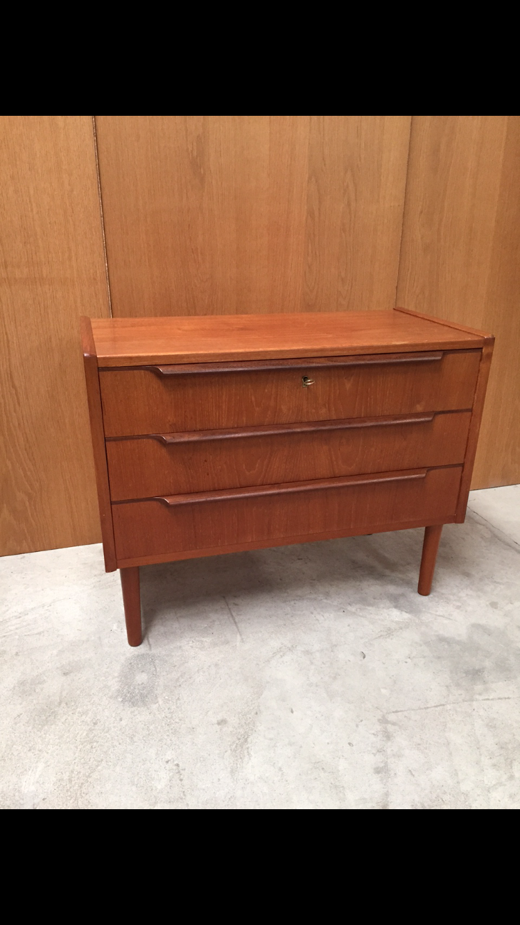 Beautiful 3-Drawer chest in teak. Upper drawer is fitted with a lock. Good condition.
