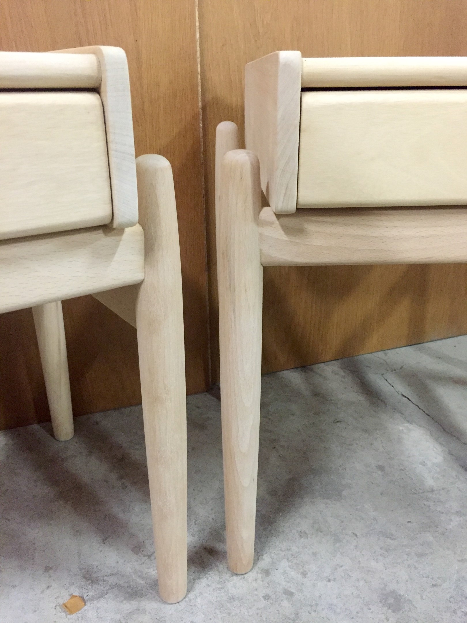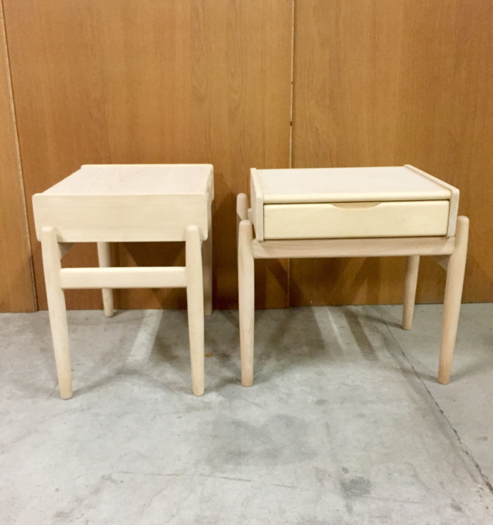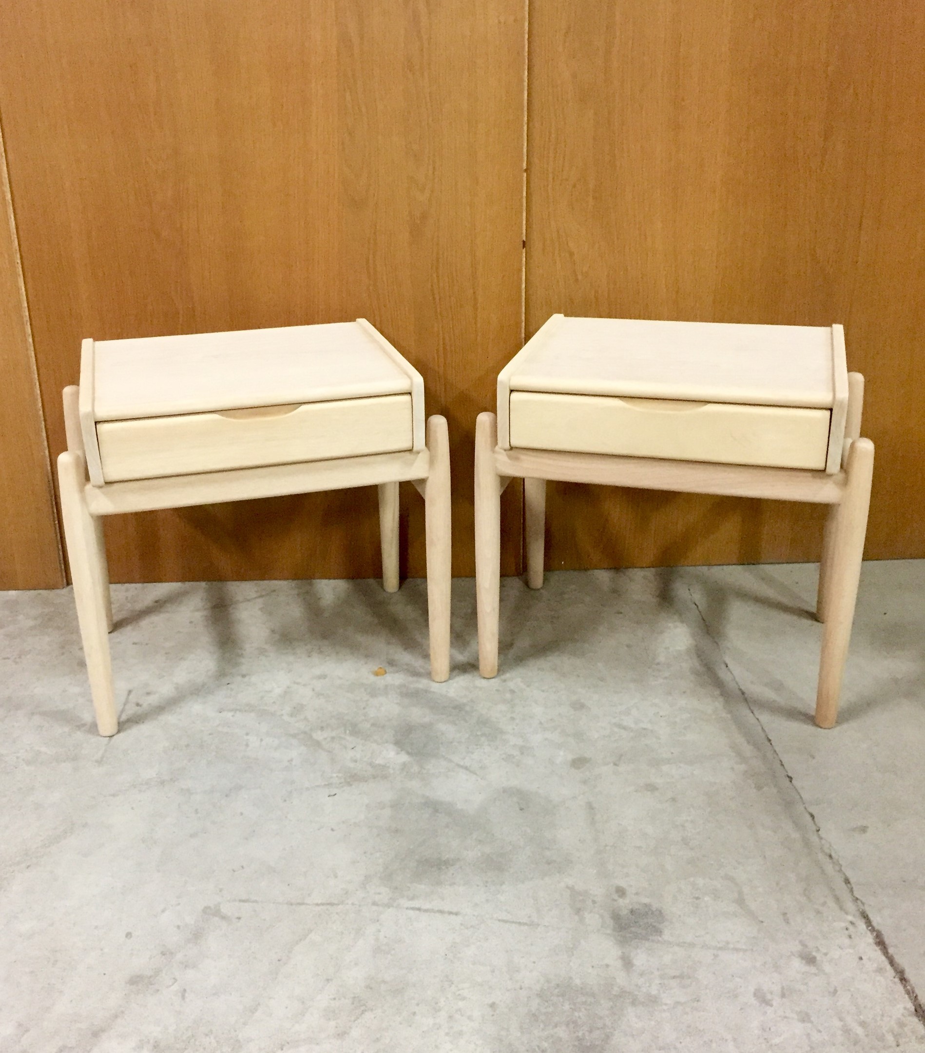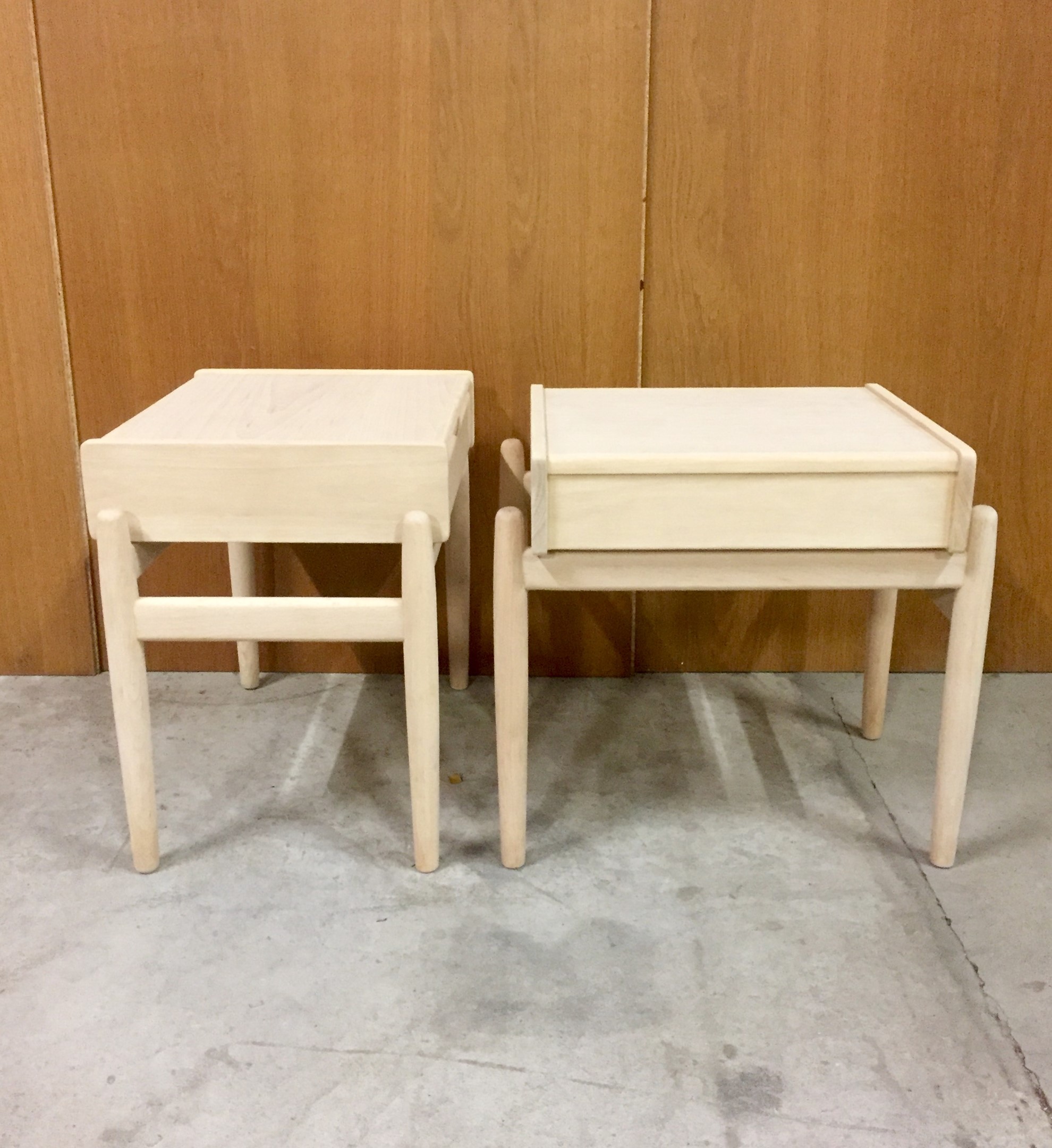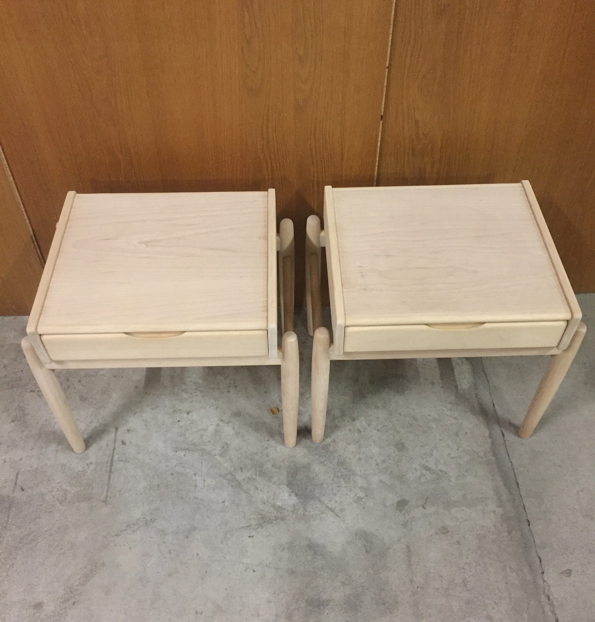 Beautiful pair of bedtables in beechwood. A carpenter have removed the old paint, the bedtables are as new!