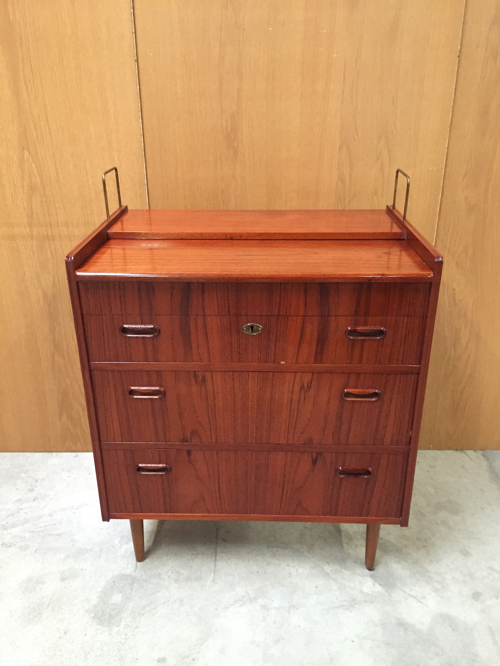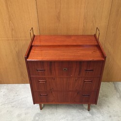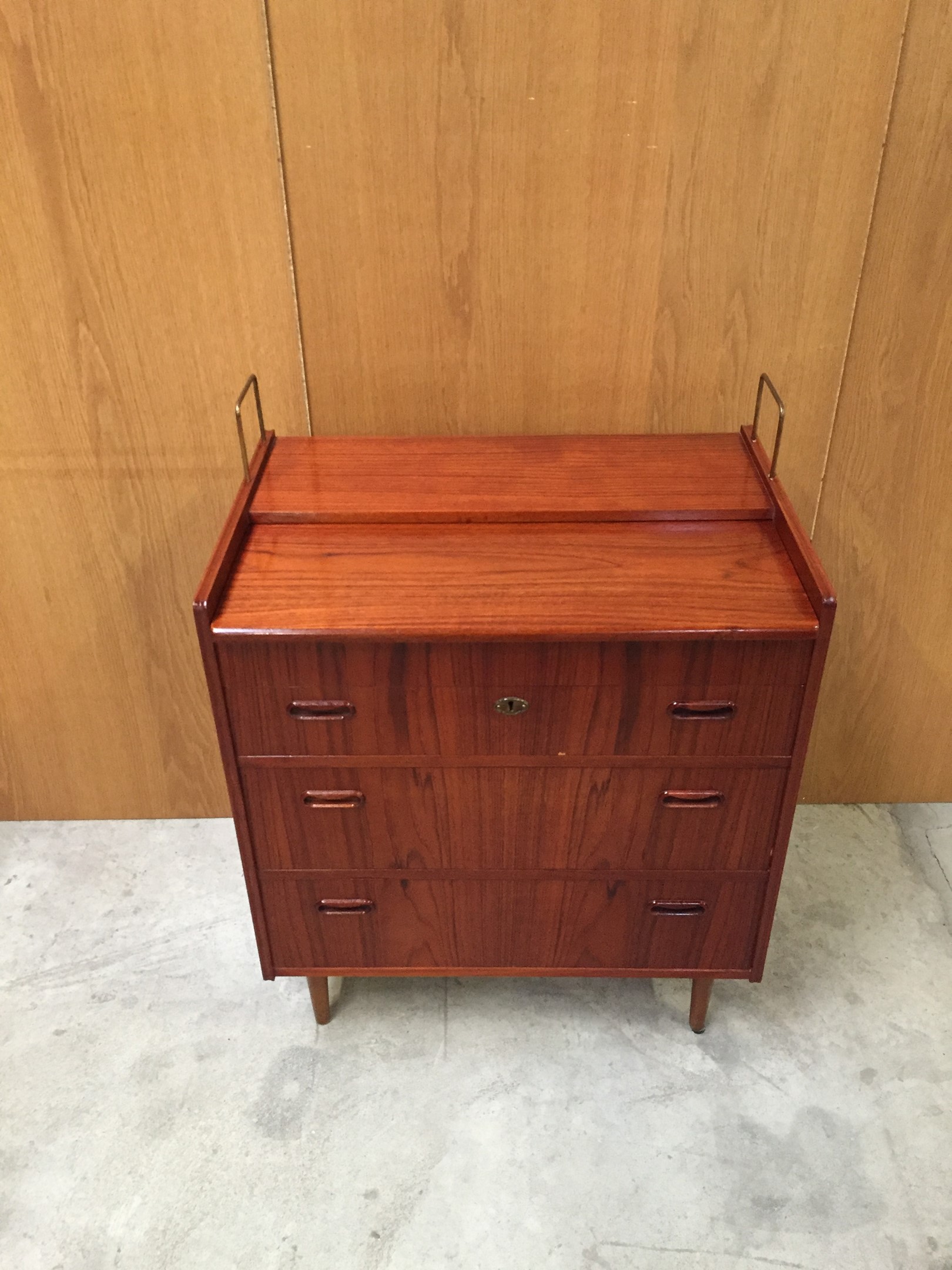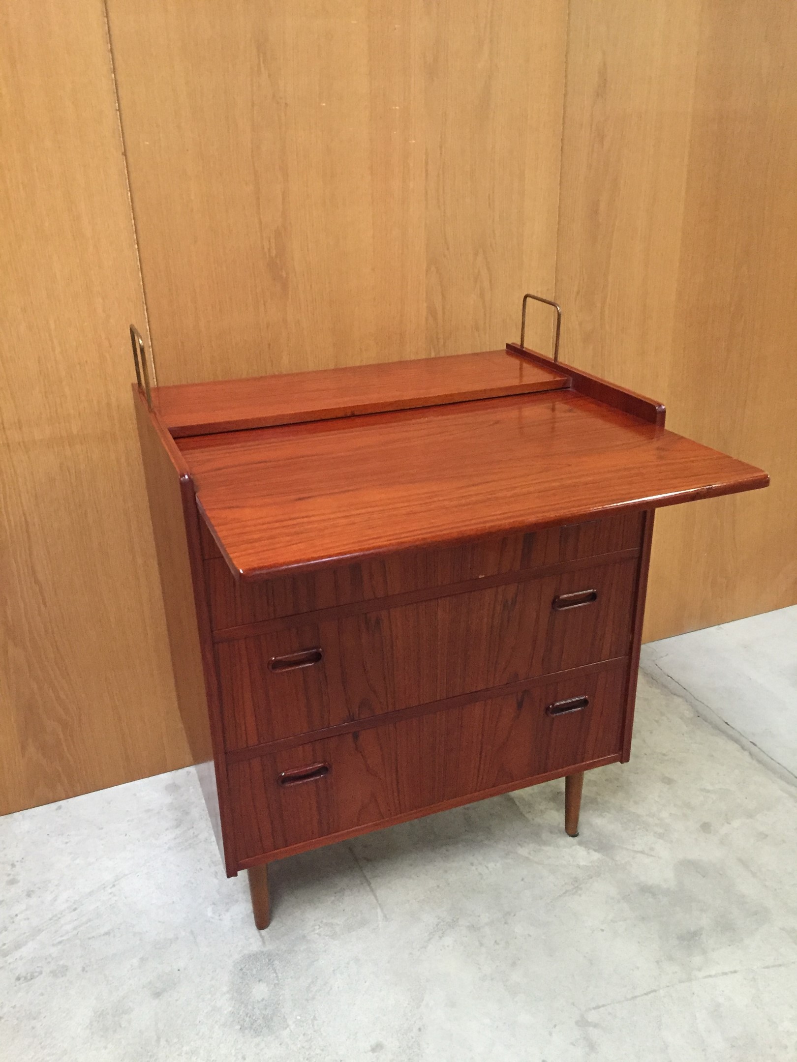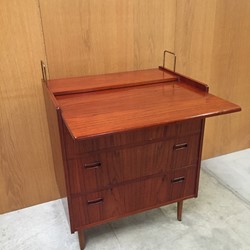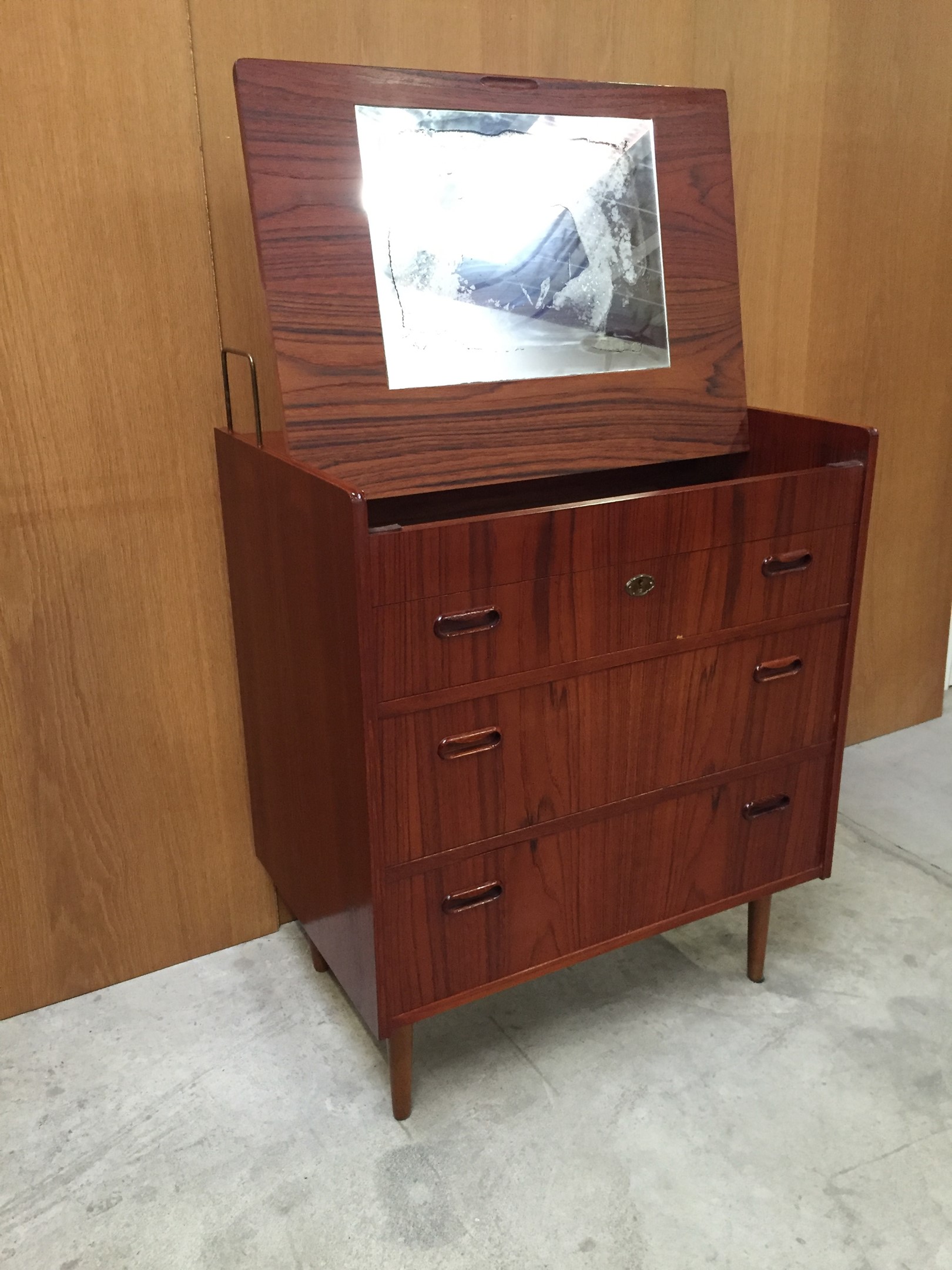 3-drawer dresser chest top drawer slides into a dressing table with adjustable mirror. The mirror has a damage (Foto)