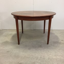 Very nice Danish modern teak dining/banquet table w/ 1 extending leave.