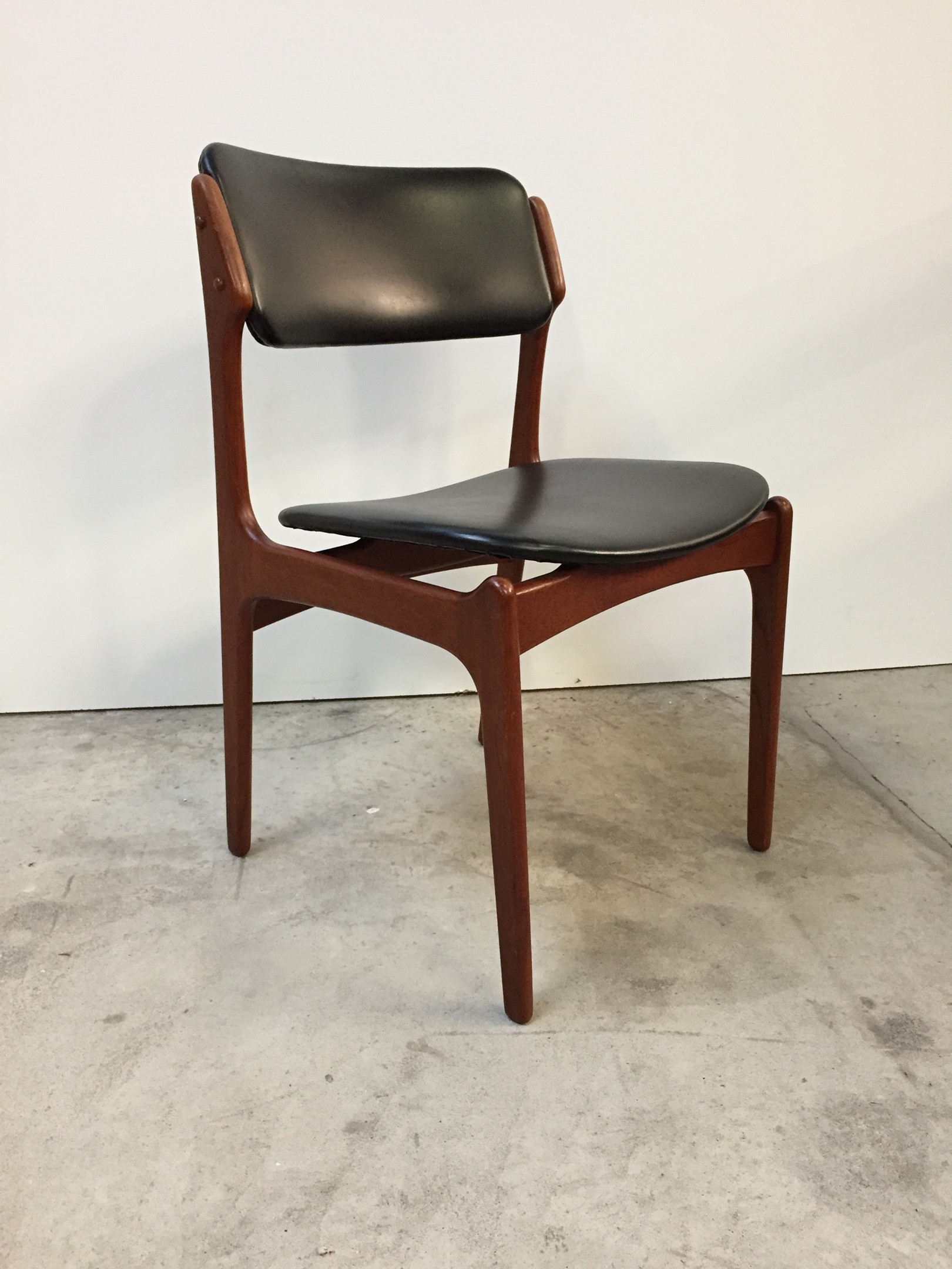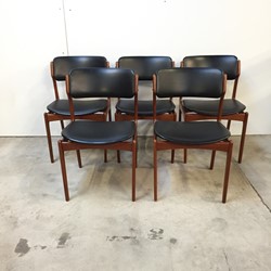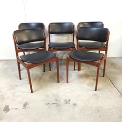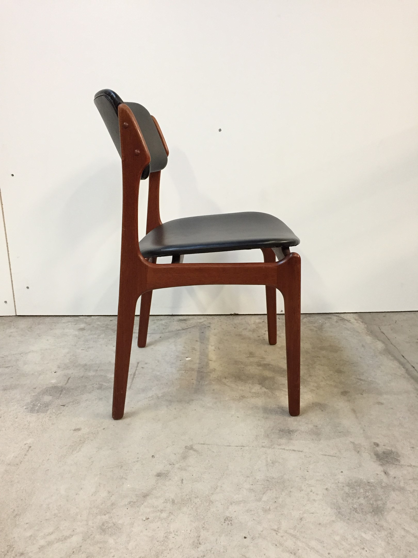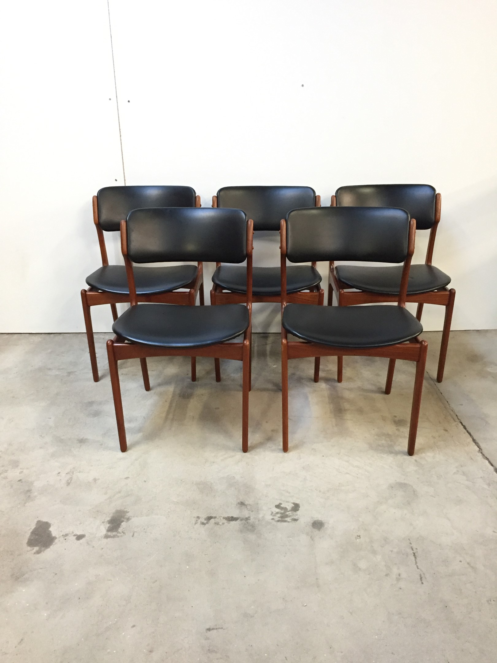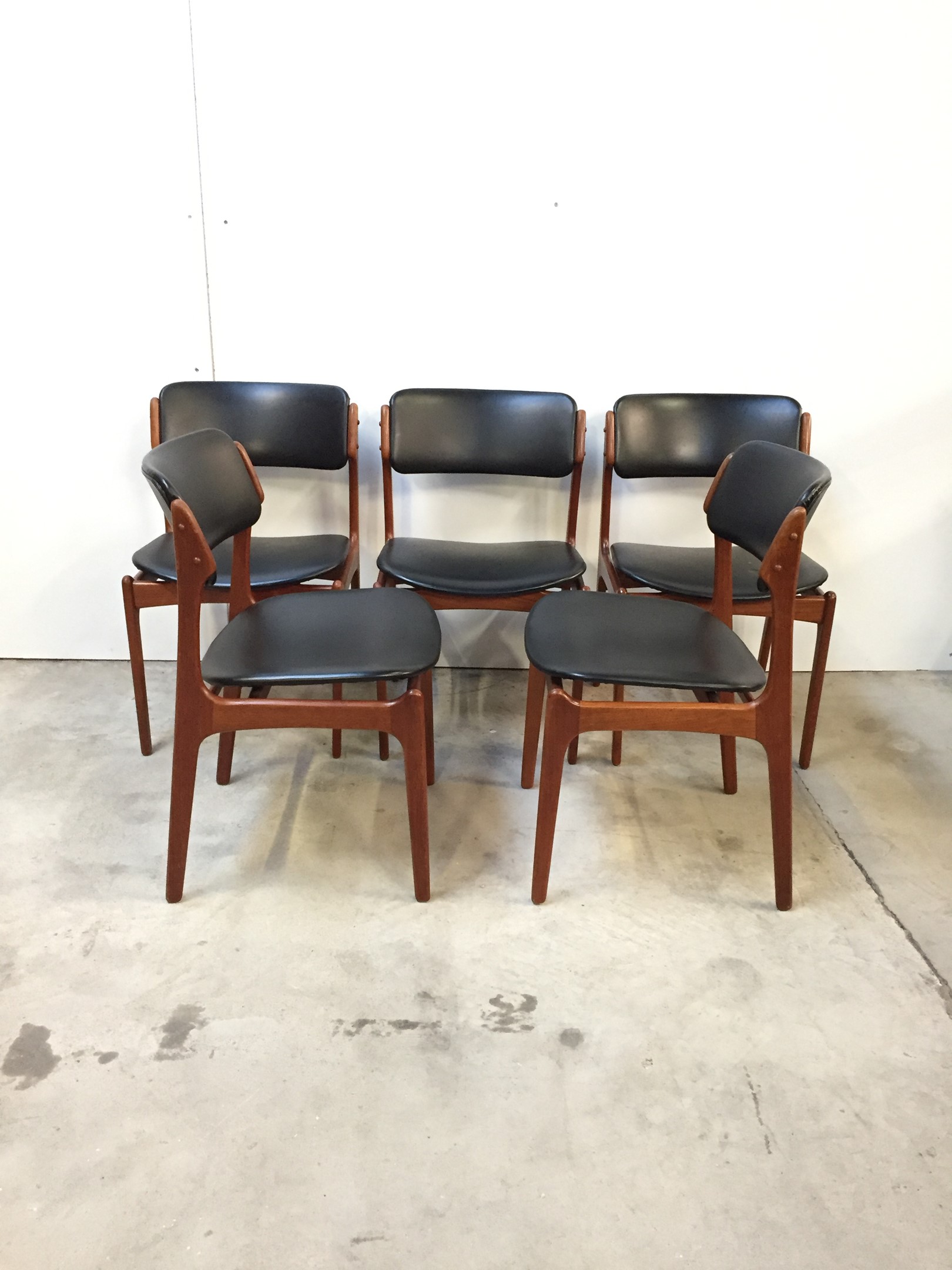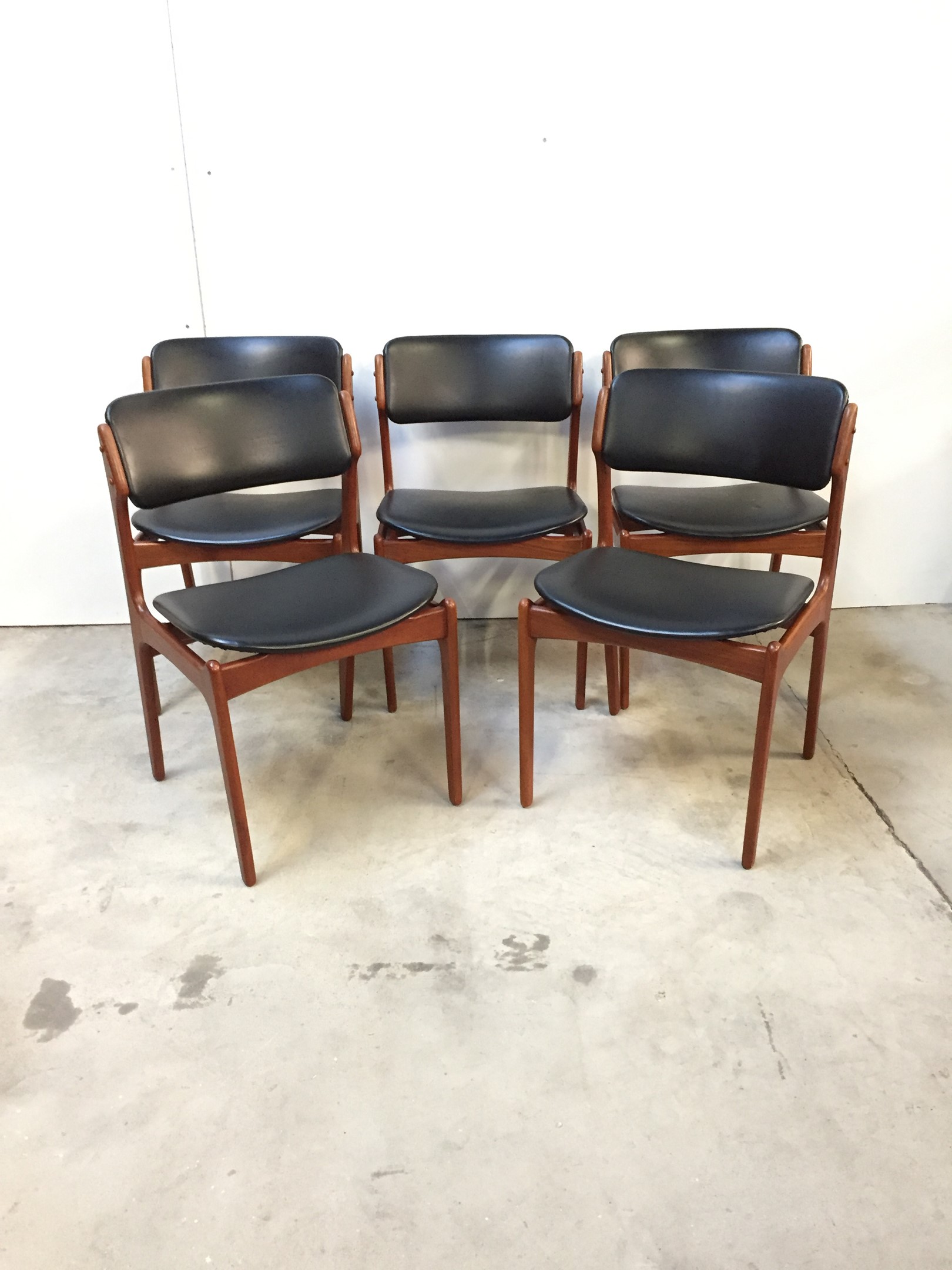 Set of 5 mid century Danish modern teak chairs with Black leather - by Erik Buck for Oddense Maskensnedkari.