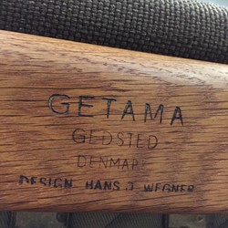 Arm chair in Oak designed by Hans J. Wegner for Getama. The armchair has a beautiful patina and no big scratches or marks on the wood.