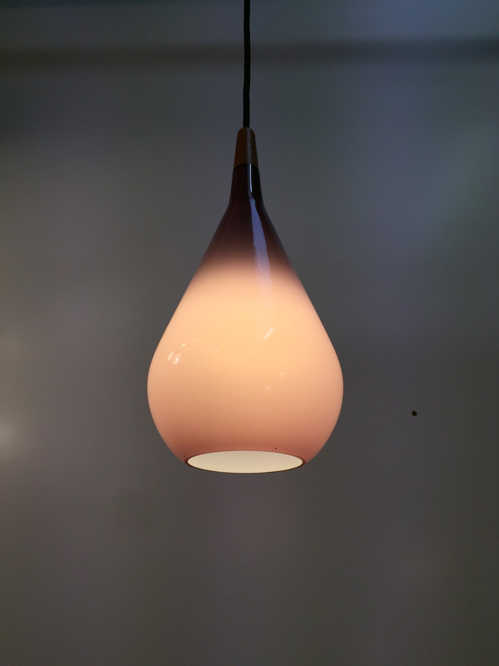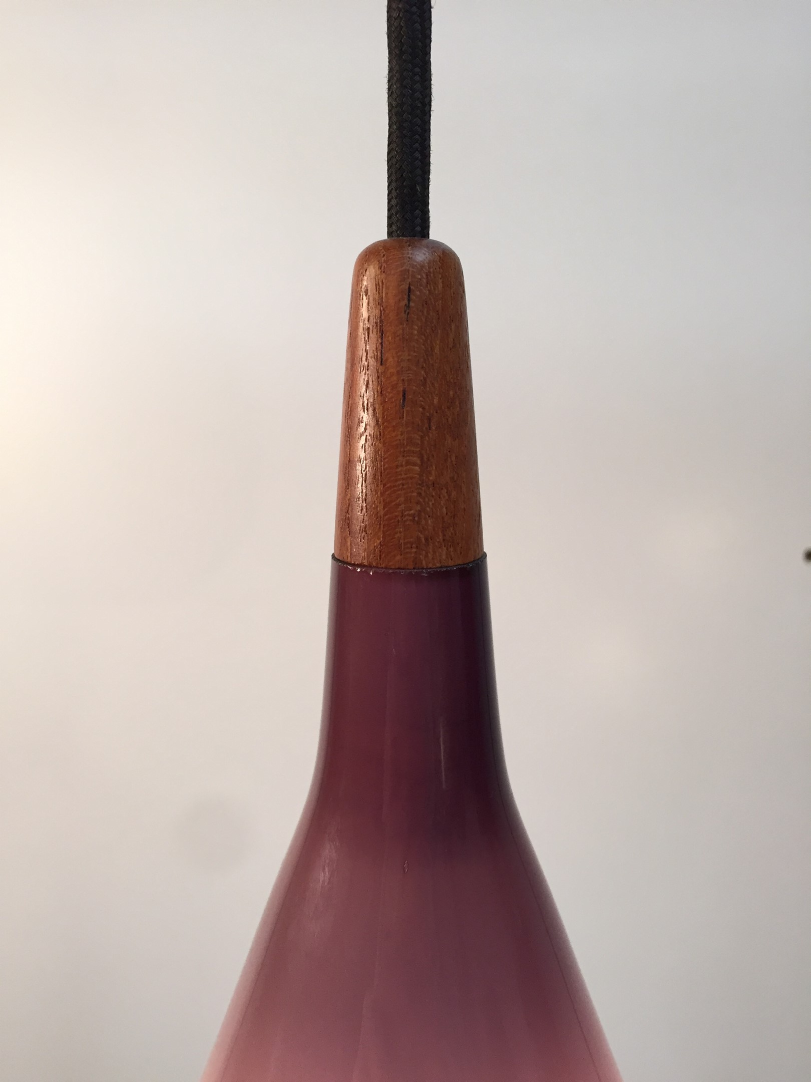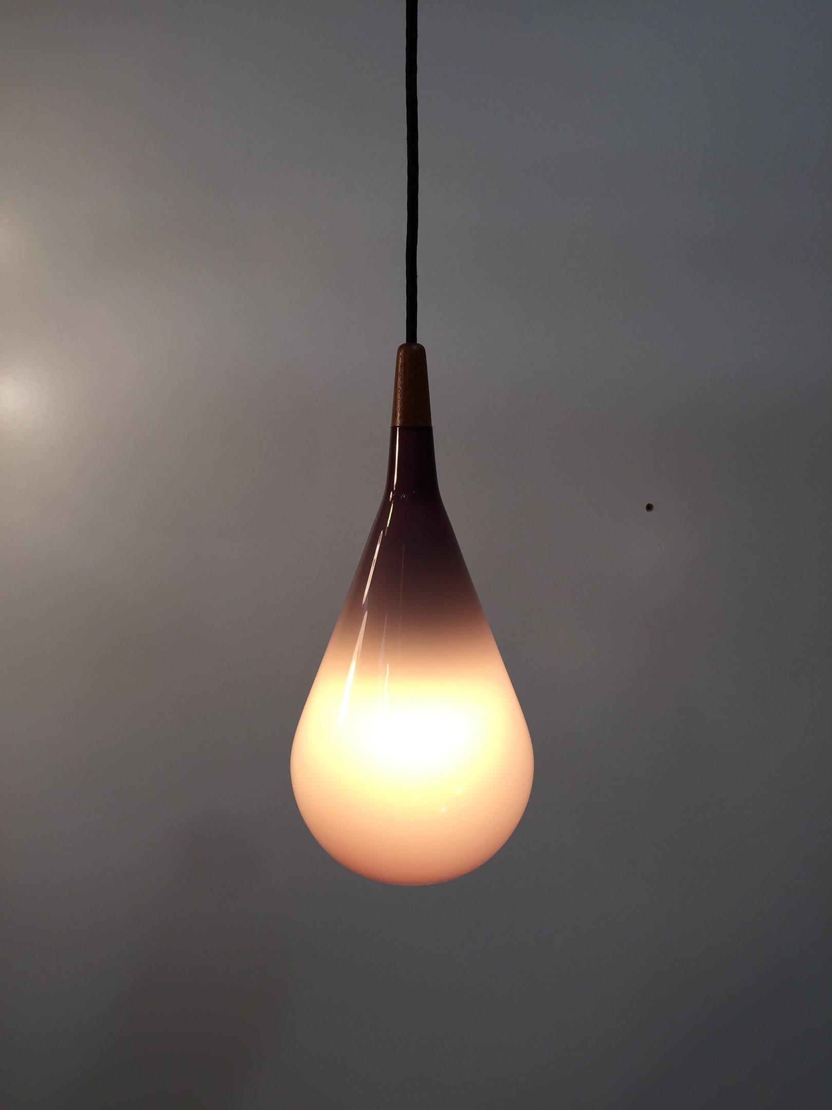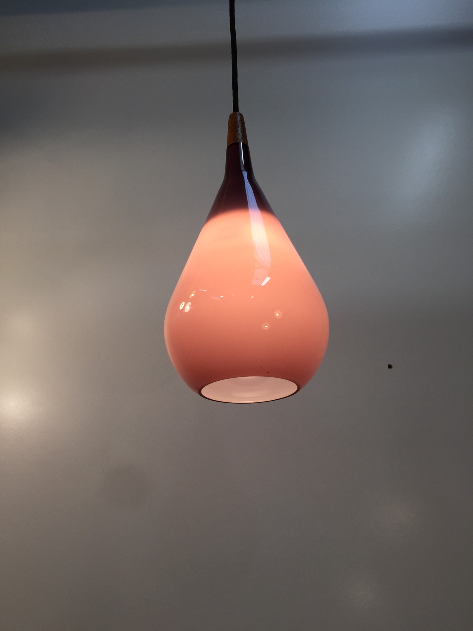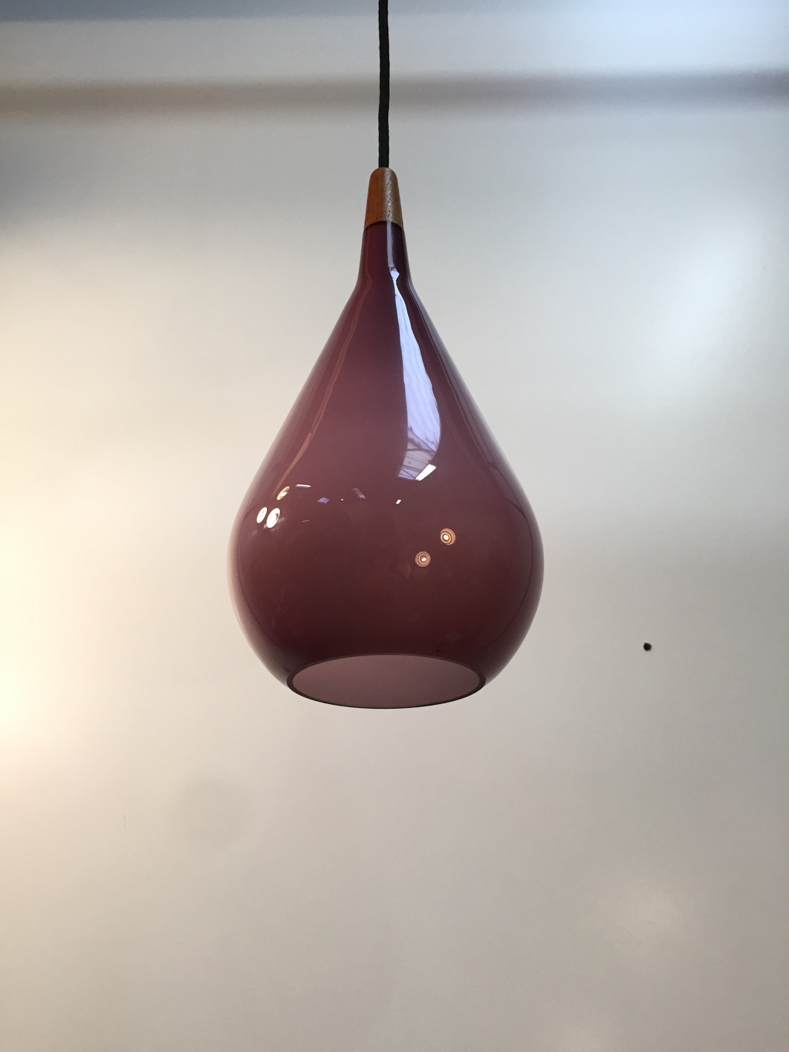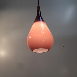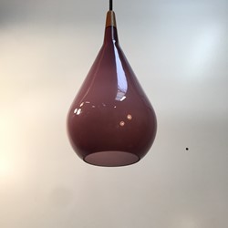 Holmegaard - Amazing vintage glass and teak pendant light