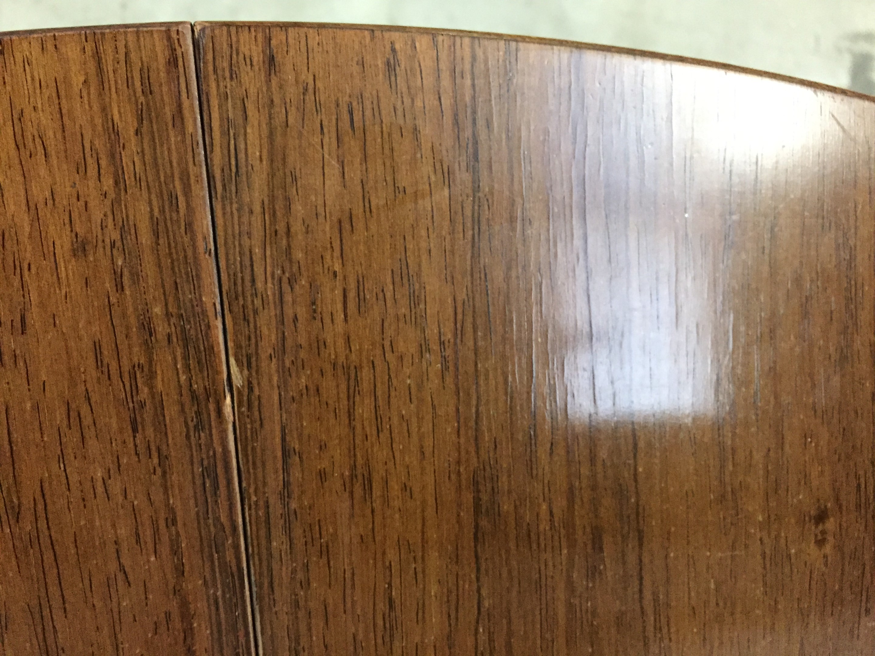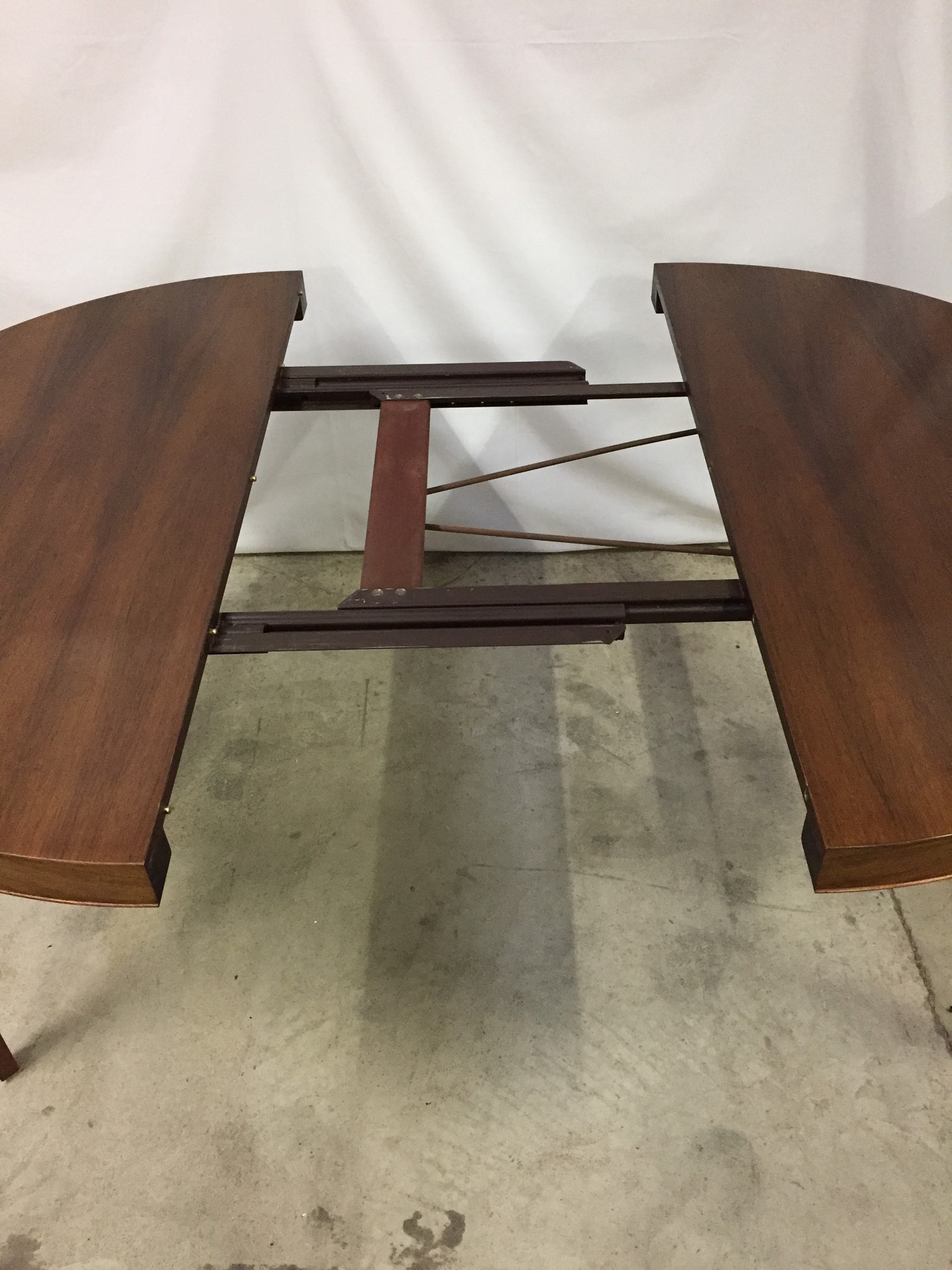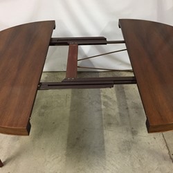 Fantastic table - beautiful rosewood color and wood grain from leaves to table top. Notice how the leg joinery forms a triangle into the table apron.