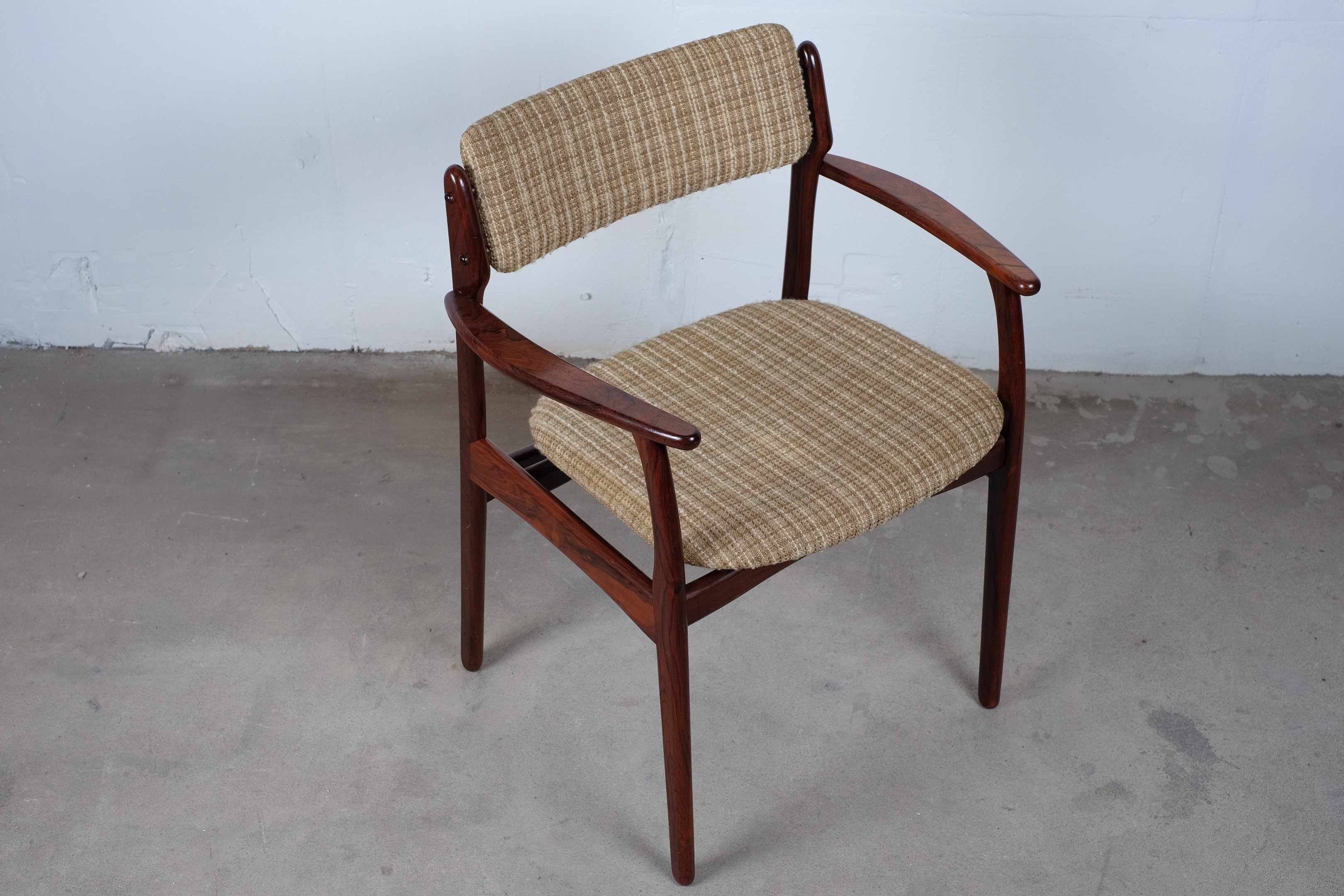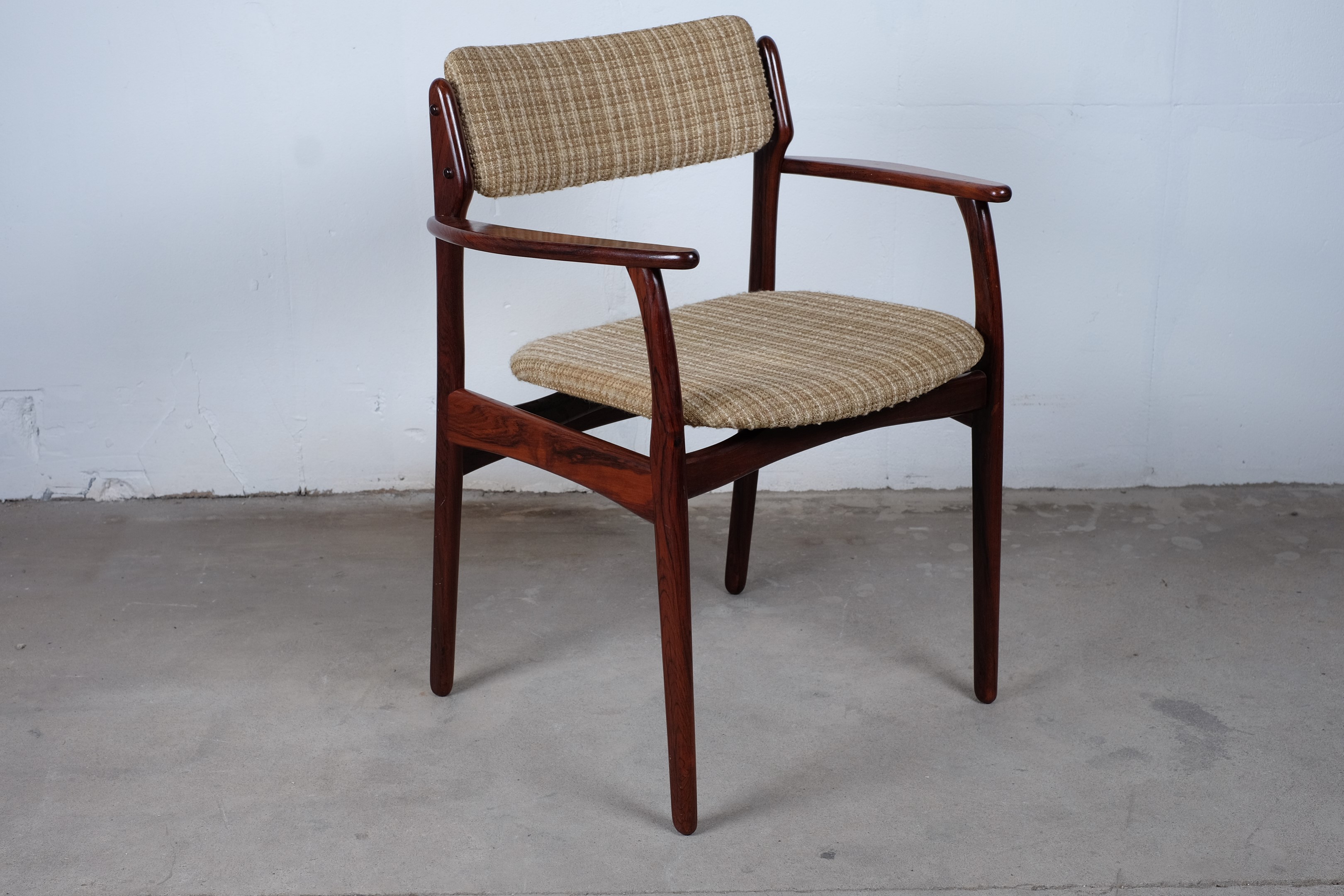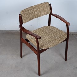 This chair looks like something Erik Buch behind, but the curved armrest and the air between frame and backrest differs from model 50 from Erik Buch.