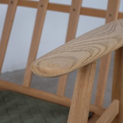 The frame is made from oak. The cushions are reupholstered with grey wool by Kvadrat. The frame are in excellent codition, sanded and washed in natural soap