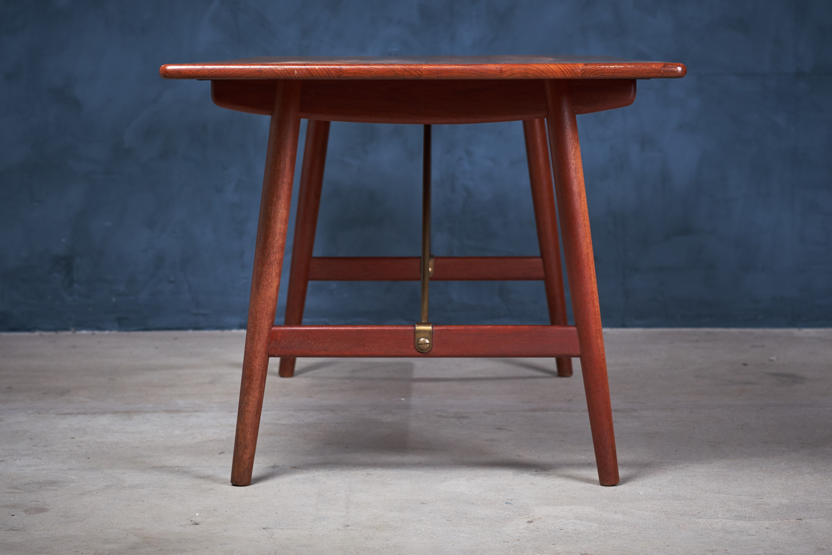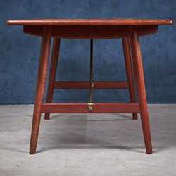 Hunting table with cross-legs in solid oak and tabletop in solid teak. This stunning table is made by Erhard Rasmussen in the 1960s. The table are in good vintage condition and would be a great addition any modern environment, such as hunting room or as lounge table. Very high quality and a great piece from the golden age of Danish design.