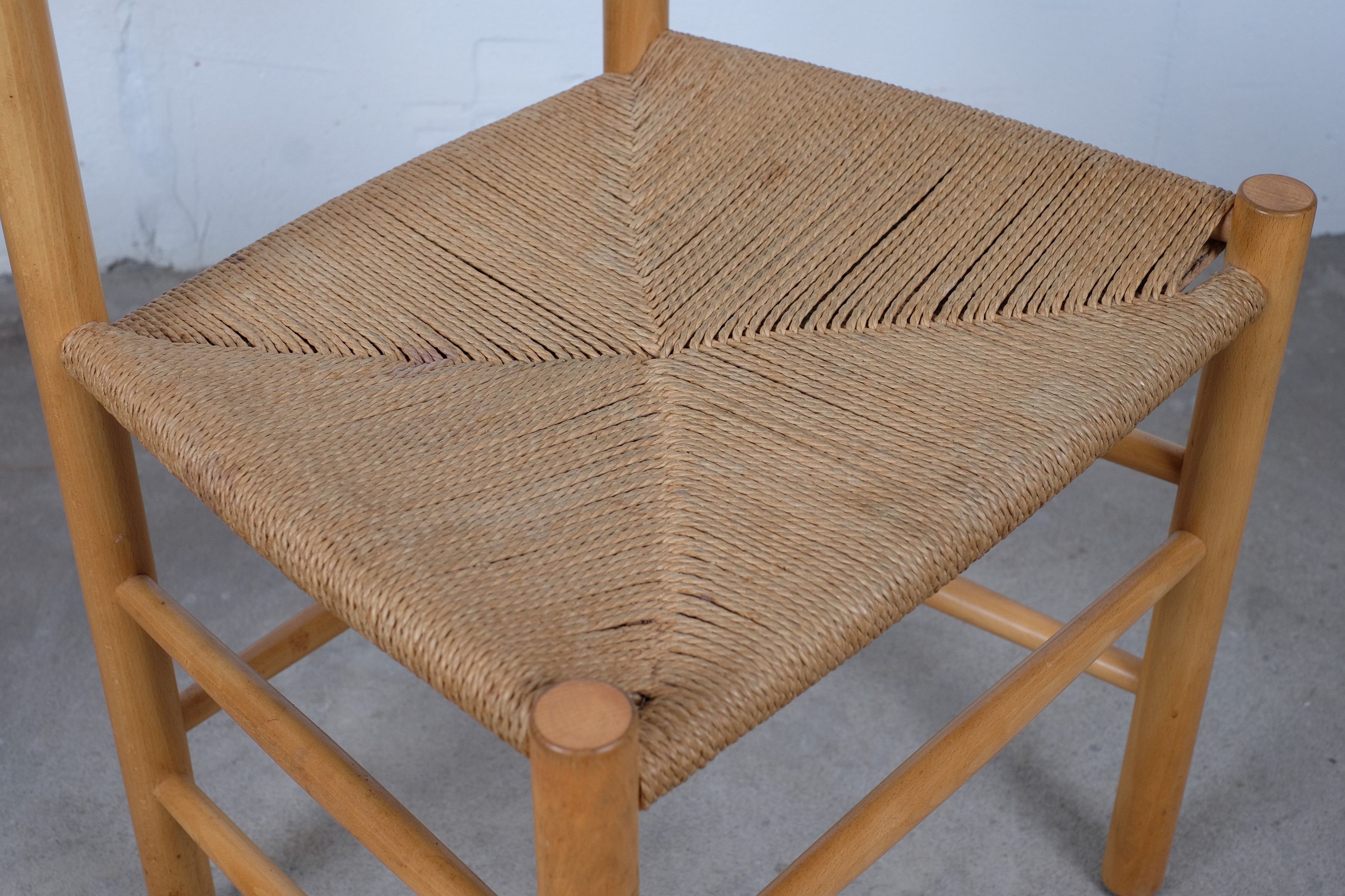 Chairs are in good vintage condition with some stains on the paper cord on the seat.