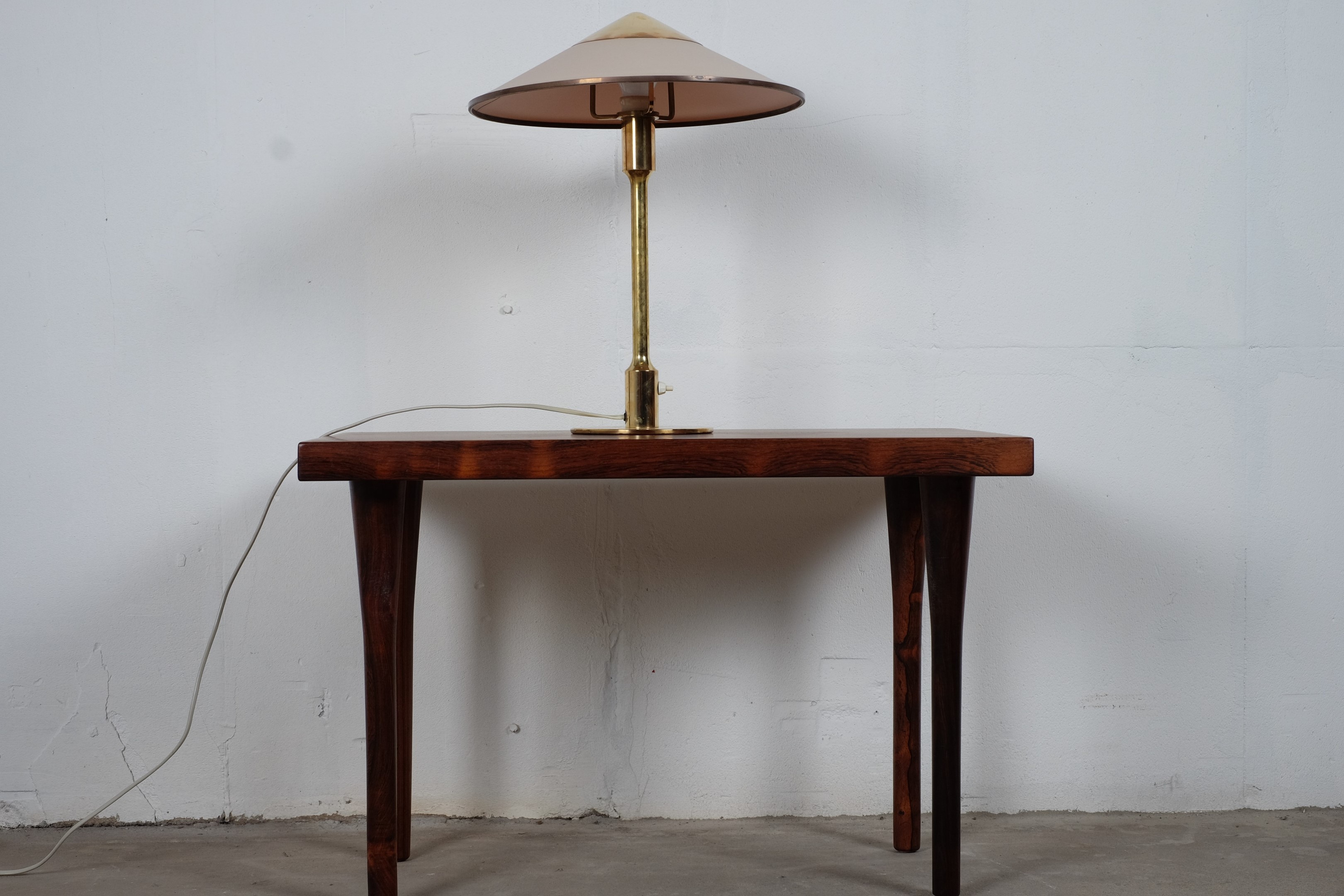 The lamp is good vintage condition, but has a small crack in the shade. I haven’t polished it, since some prefer a little patina.