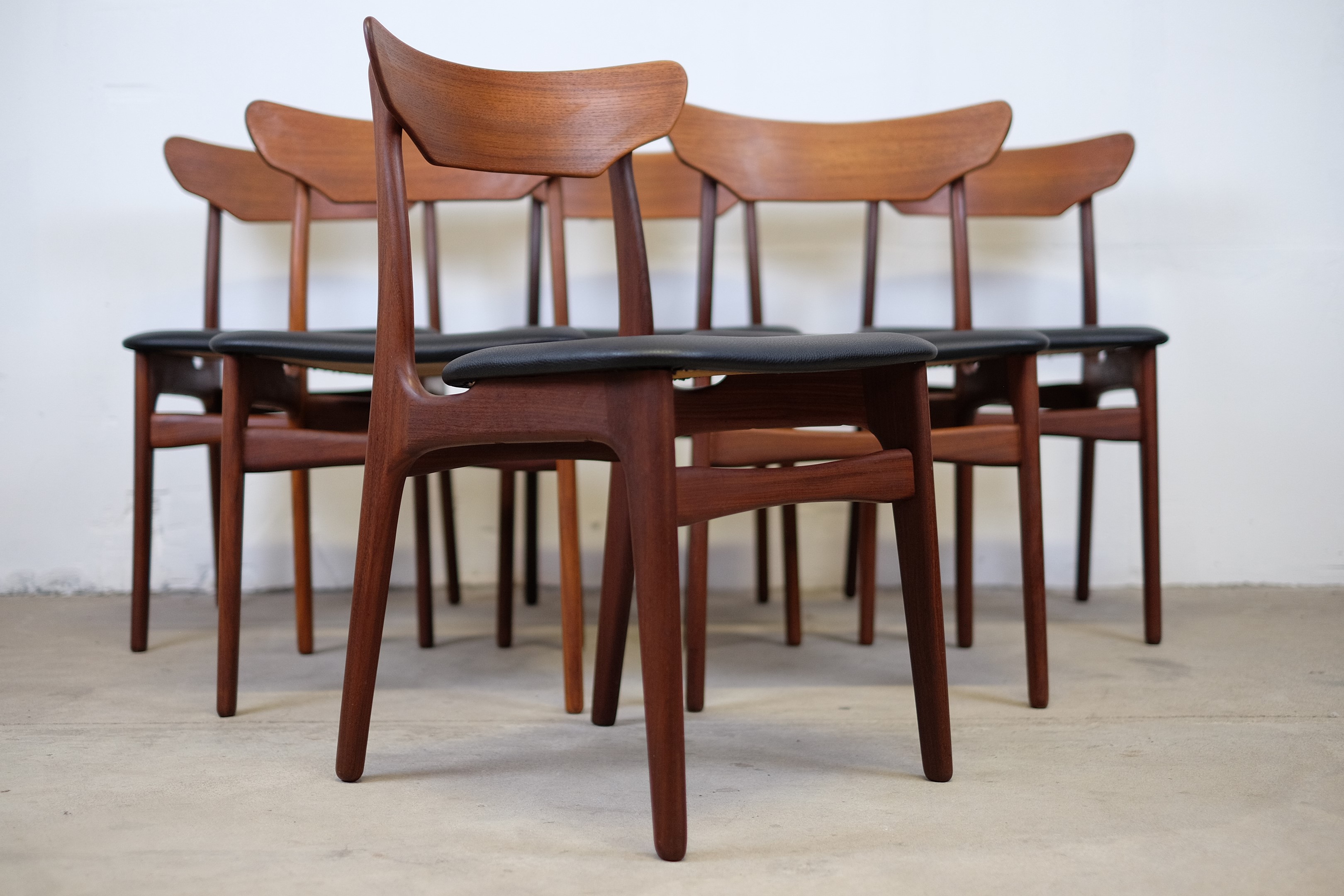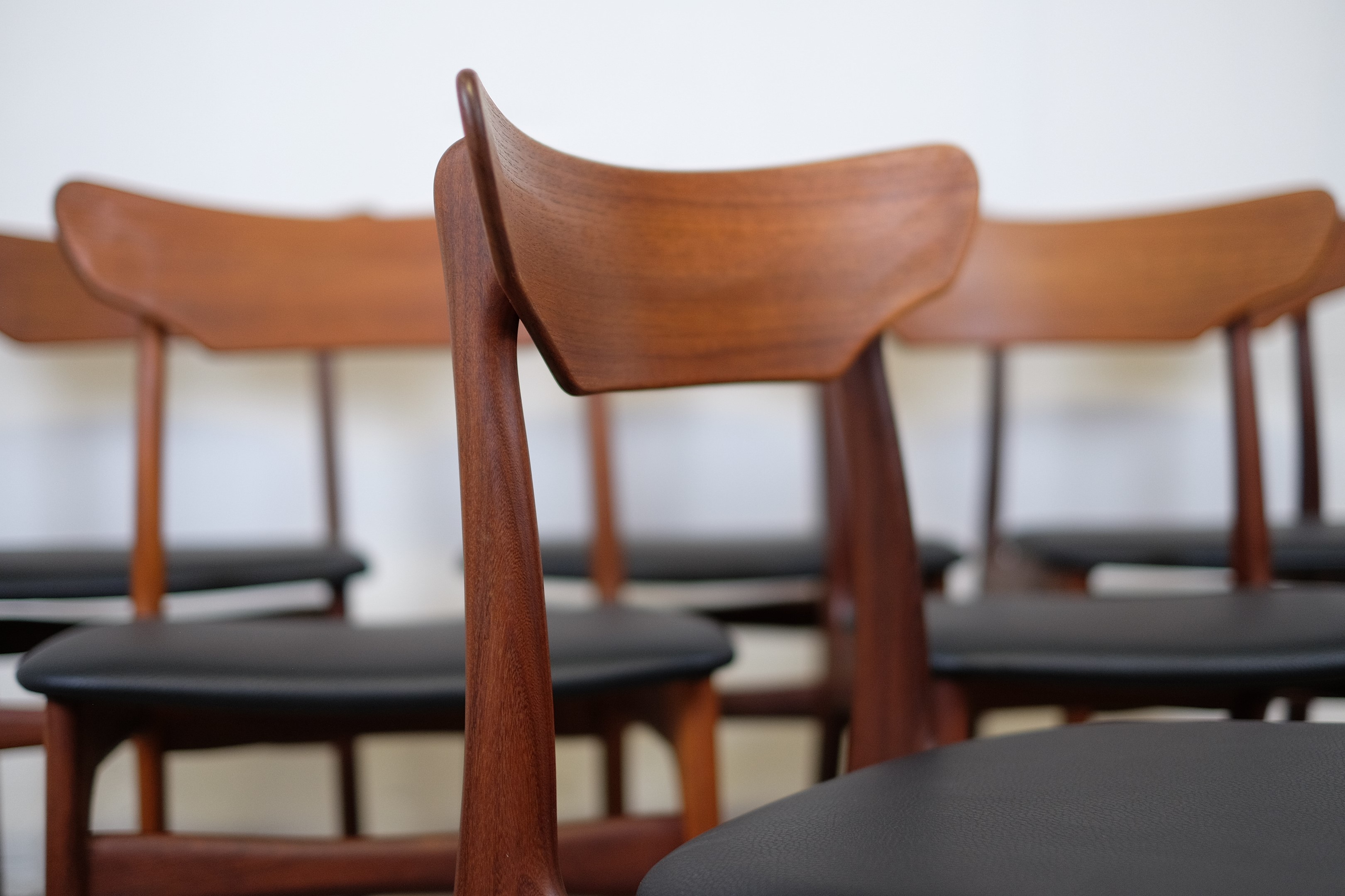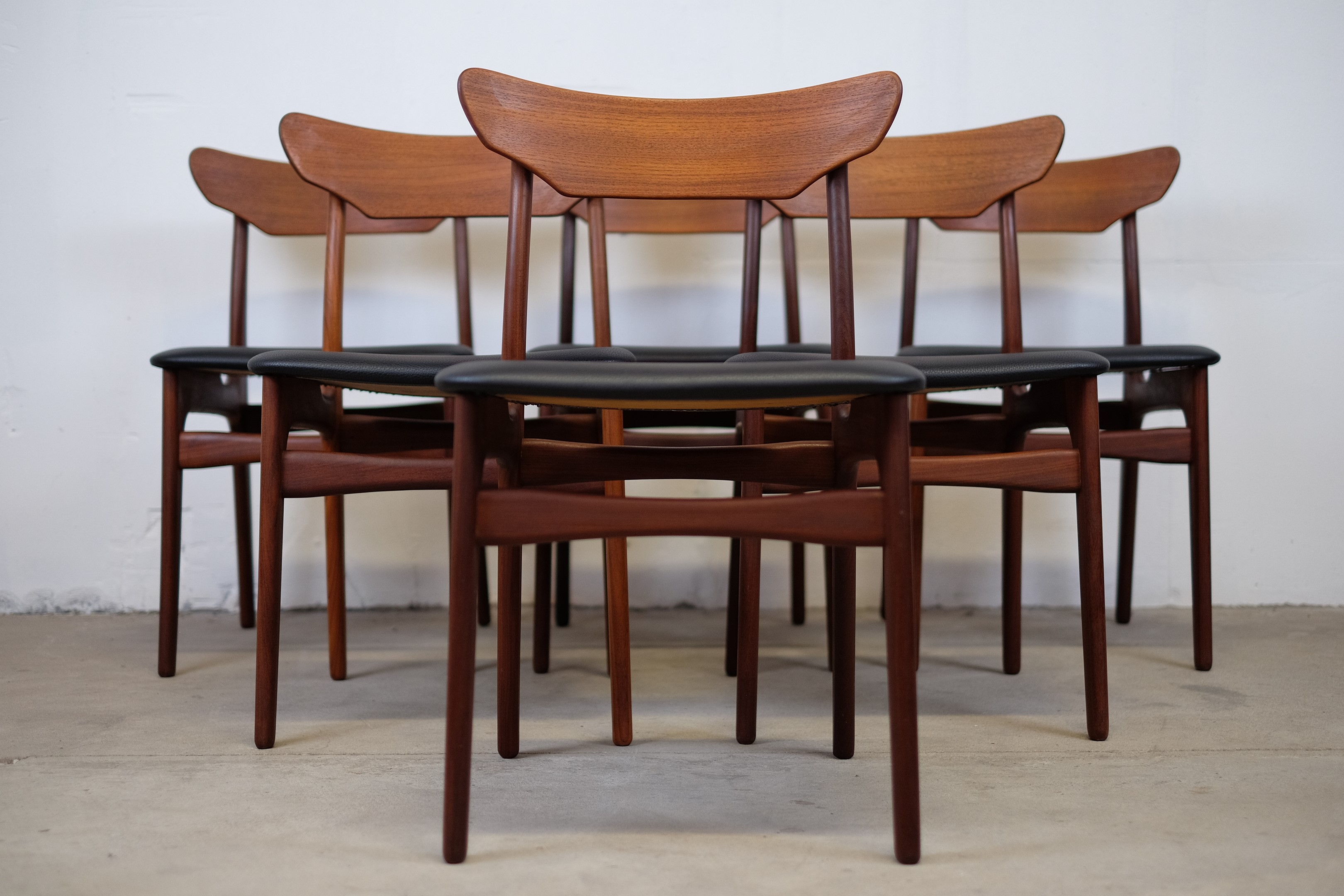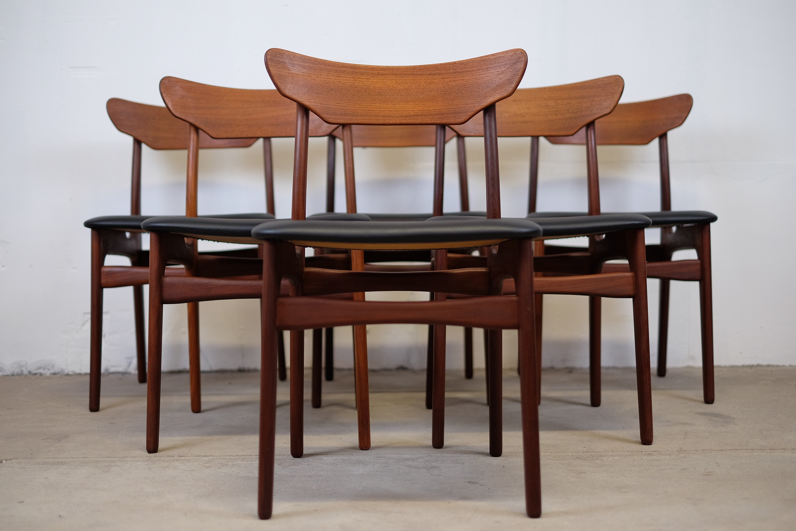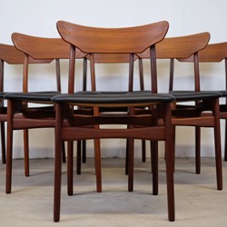 Dining chairs by Schønning & Ellegard in very good condition with leather on seat. New upholstered.