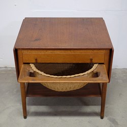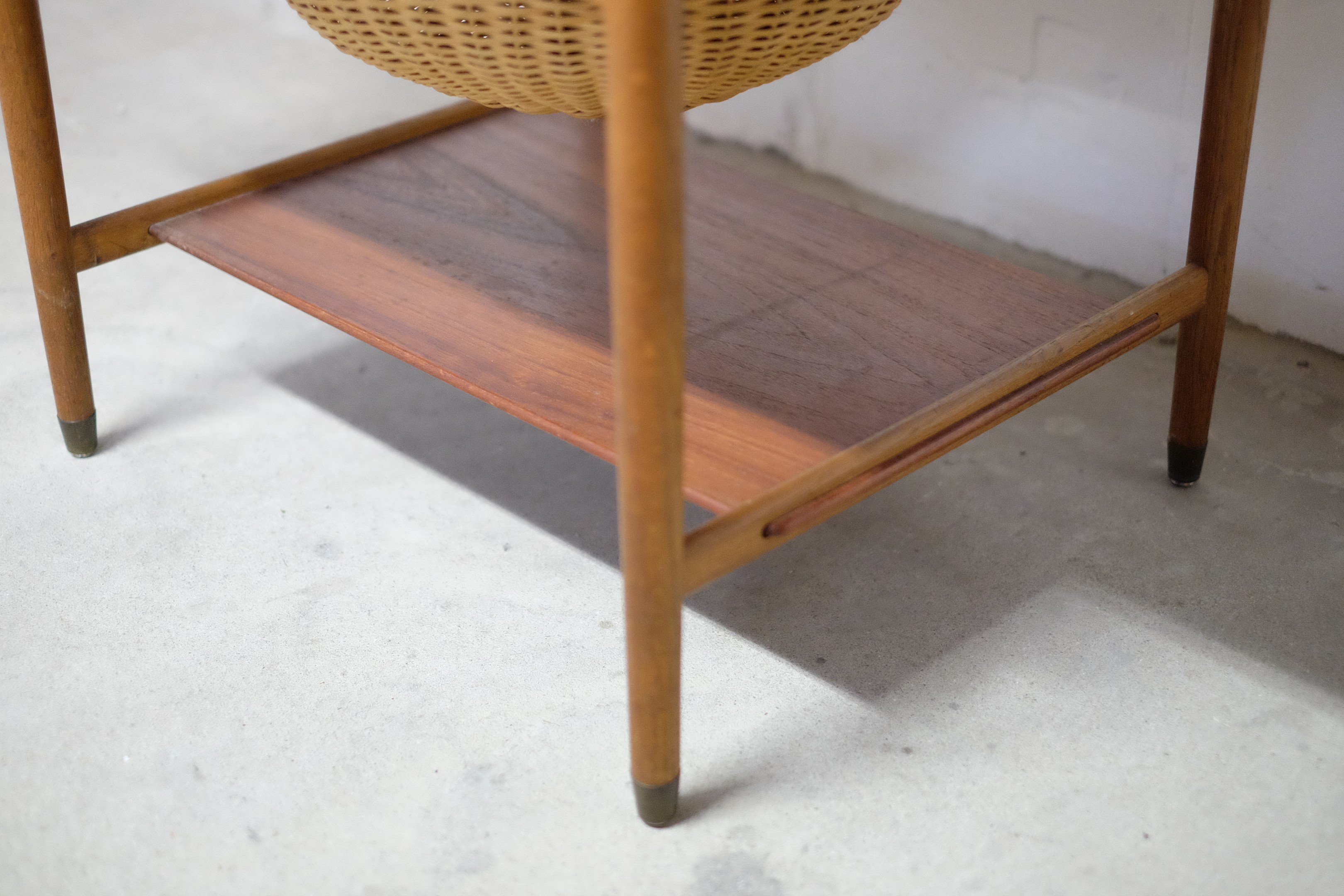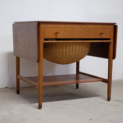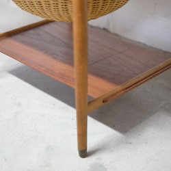 Hans J. Wegner sewing table. Model: AT-33. Design 1959. Solid teak and wicker.