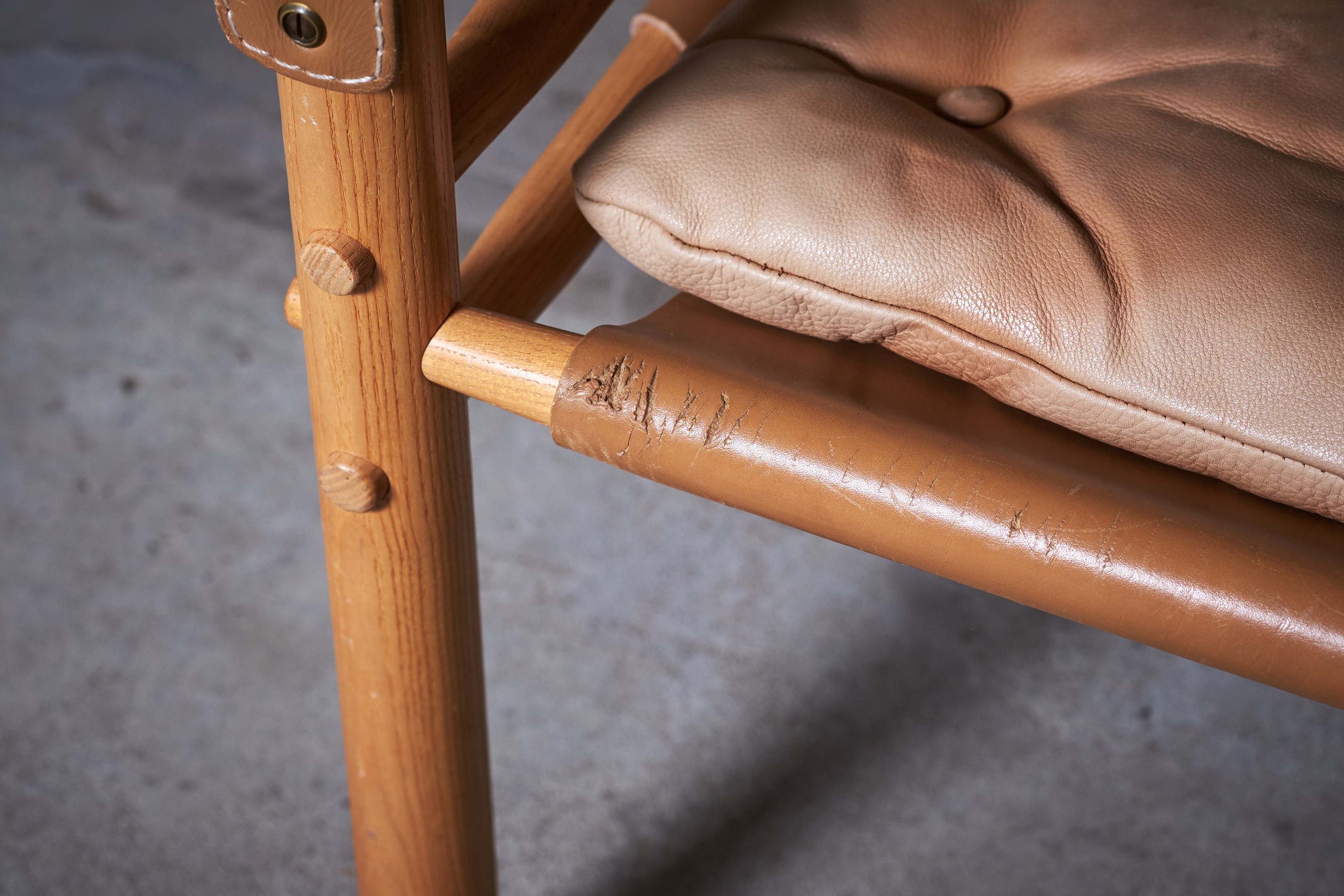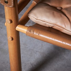 The frame is constructed without any glue or screws and uses the support of slung leather, great condition. The beautiful original leather is in almost in perfect condition.