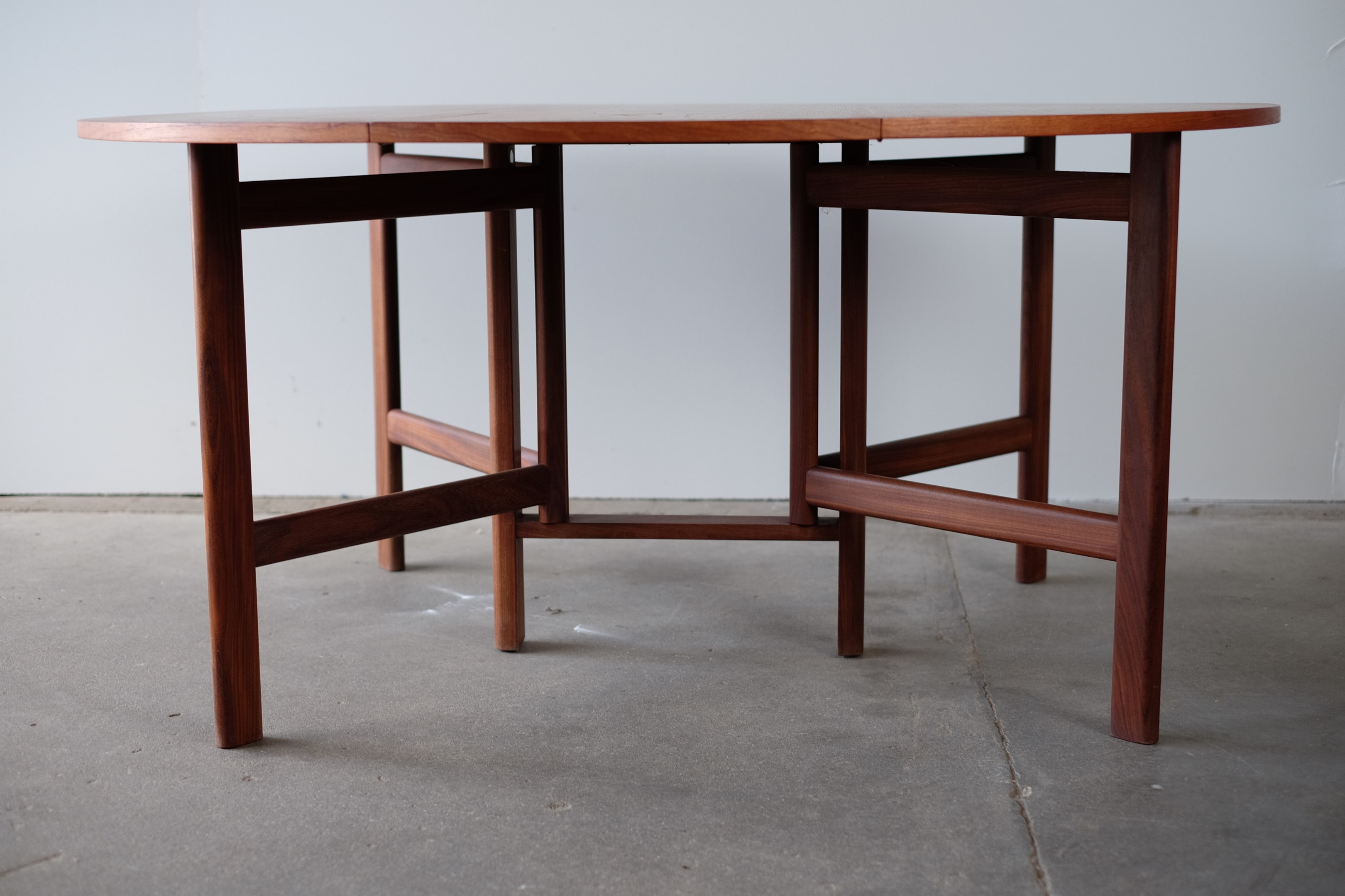 Stunning dining table in teak by unknown Danish designer. A table with many possibilities and with room for the whole family. The table is very practical and in a great quality. It's a very special table I have not encountered before. The table is in great condition.