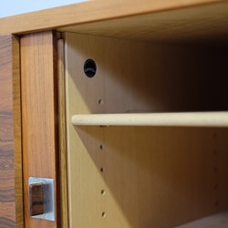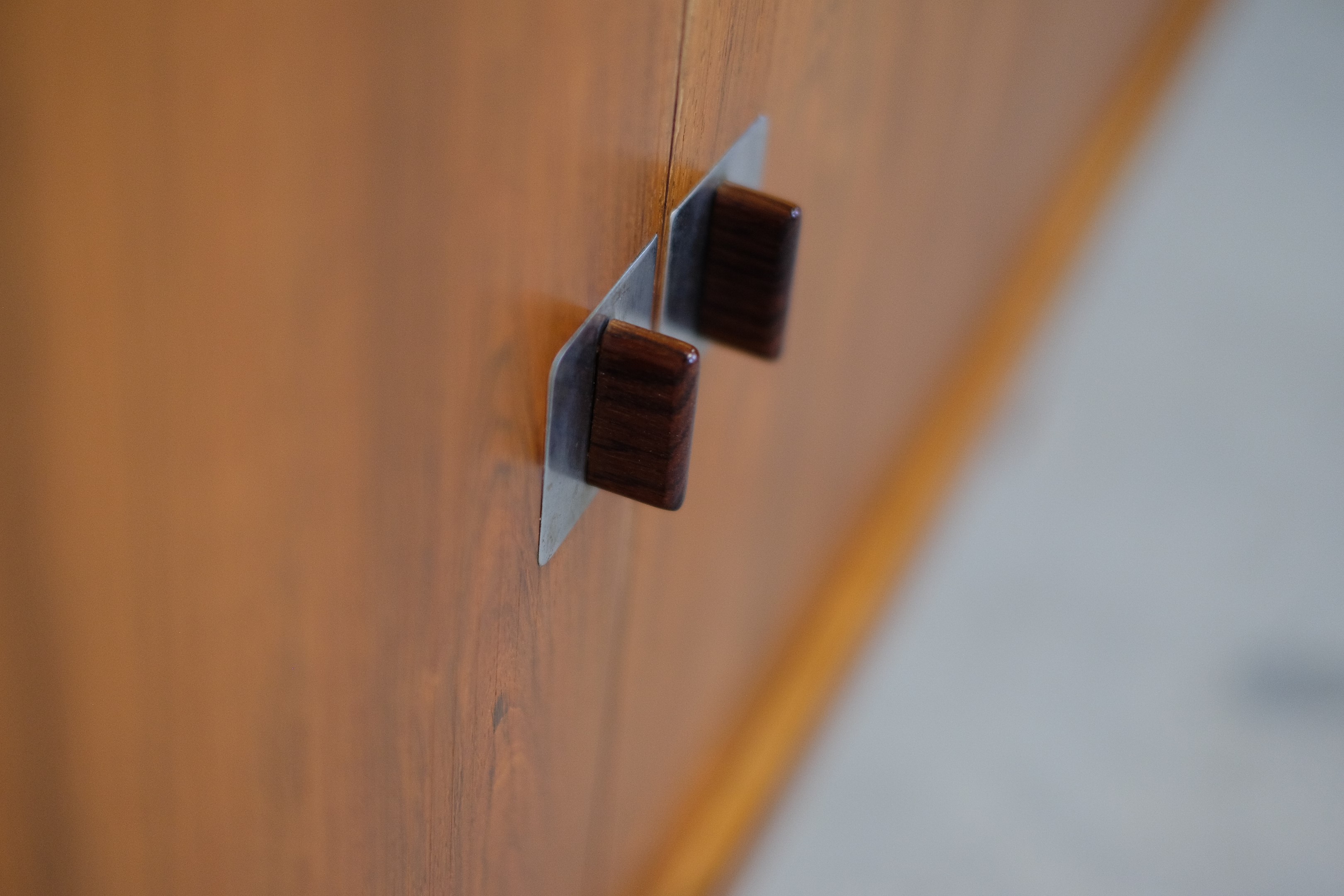 The sideboard has one small chip and a small stain/colour difference on top, but nothing that does anything bad or interferes with the sight of the furniture. Overall condition: good. This sideboard is sure a president worthy!
