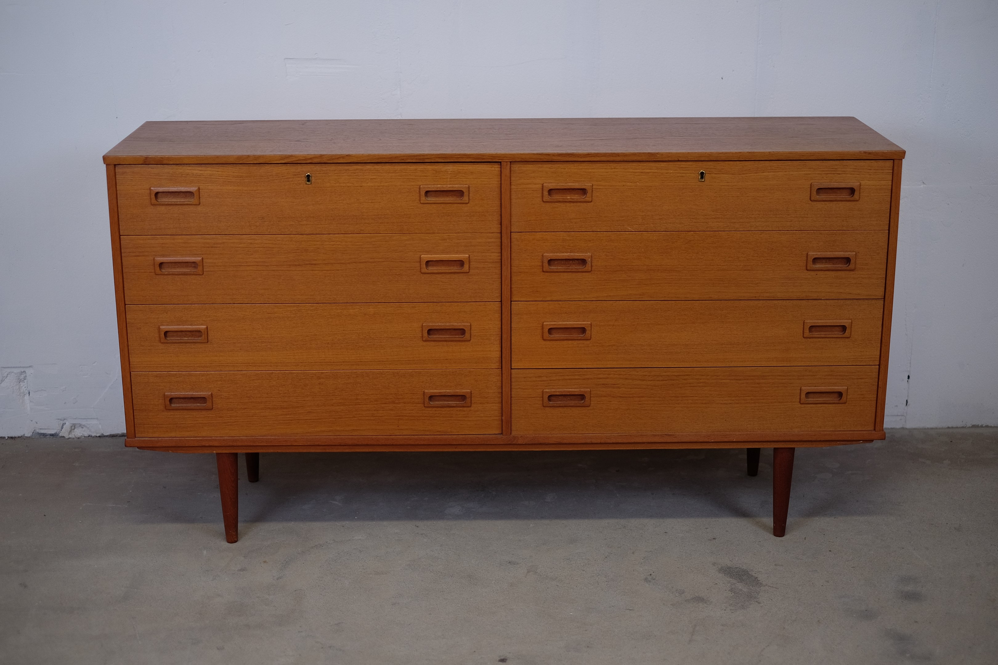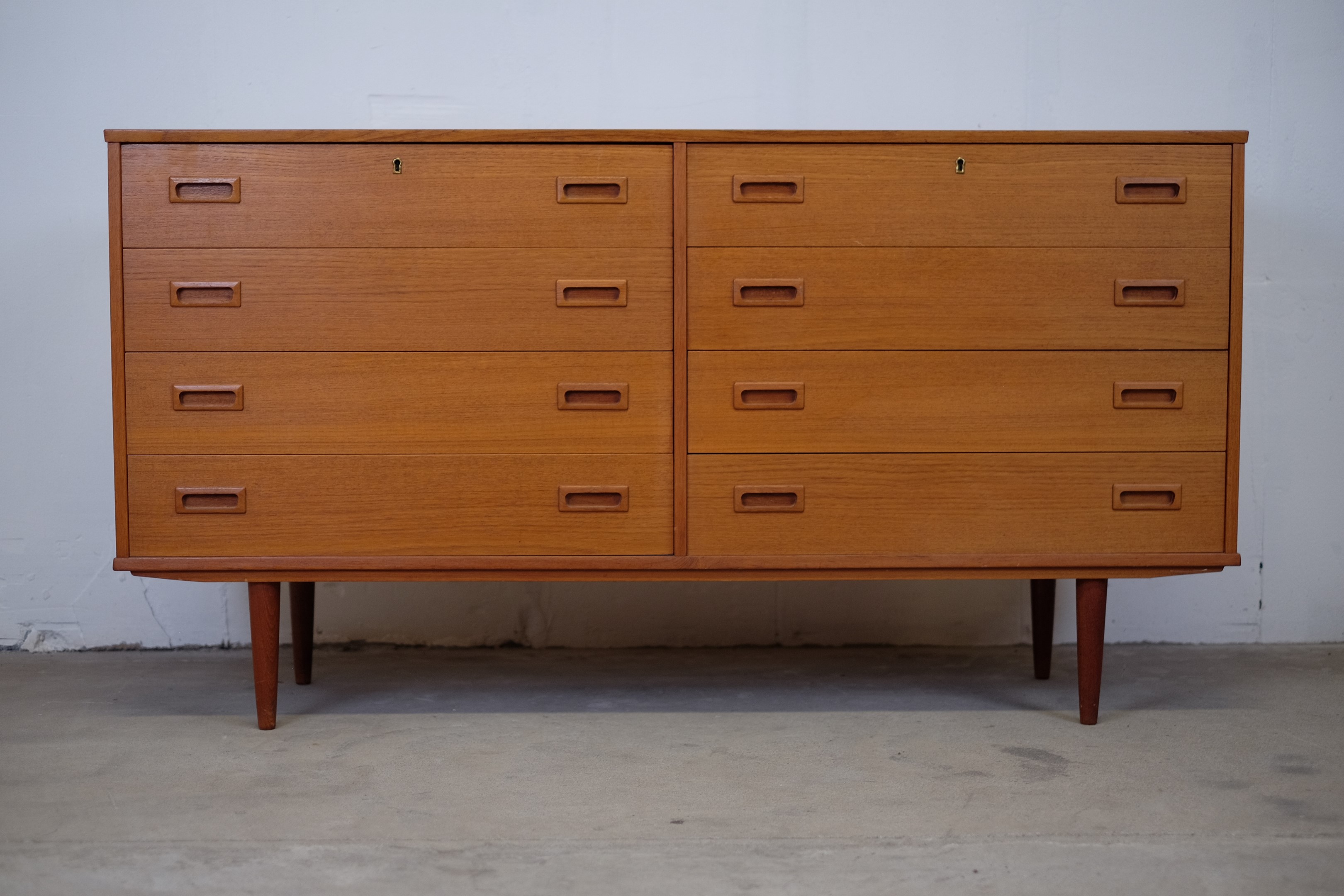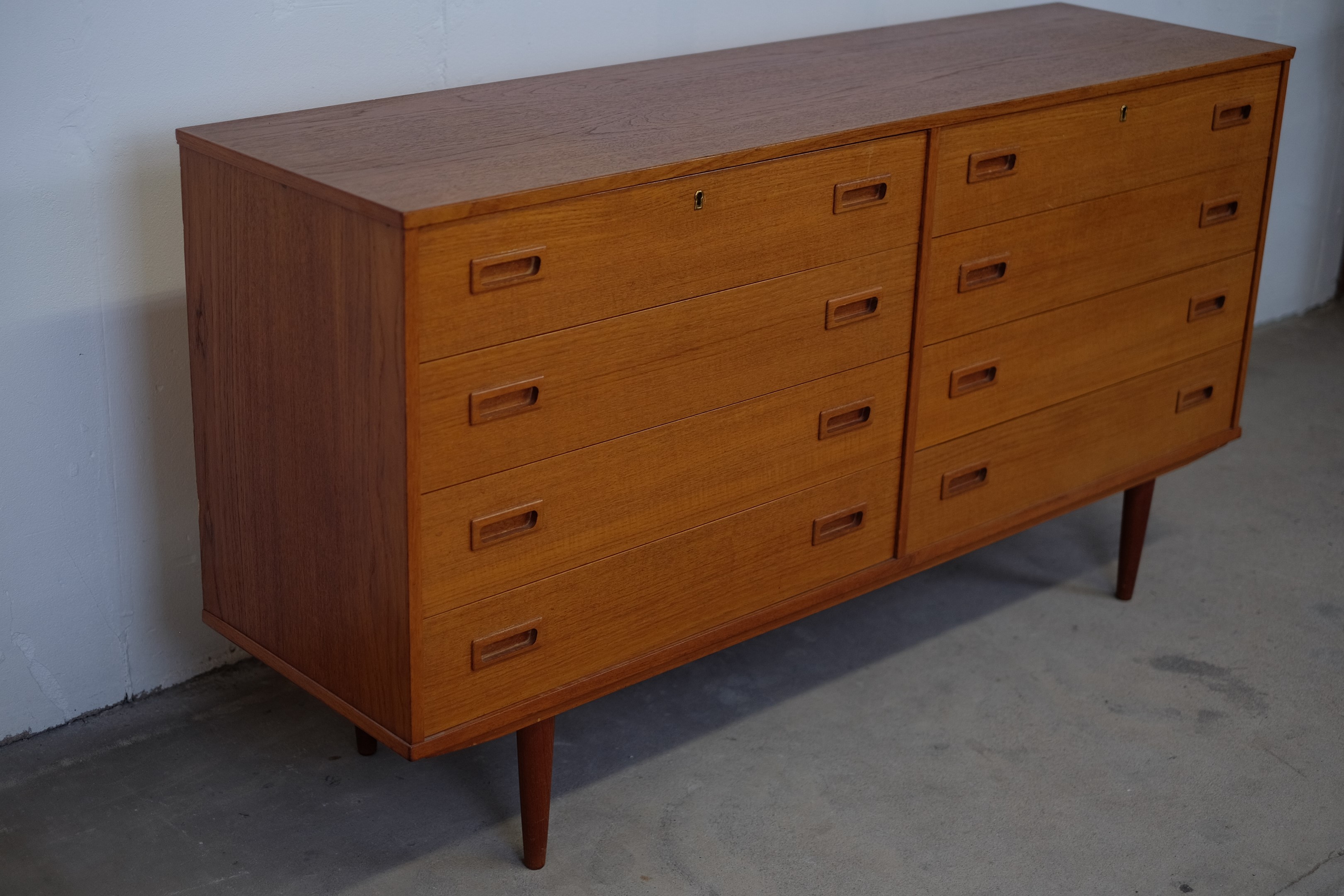 Danish modern dresser designed by Poul Hundevad & Co in the start 1960s. Beautiful design double dresser in teak with eight drawers, rectangular recessed pulls for a clean, minimalistic design.