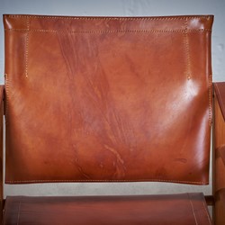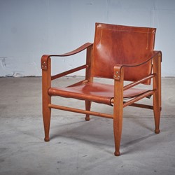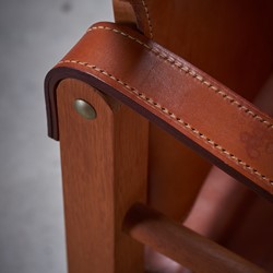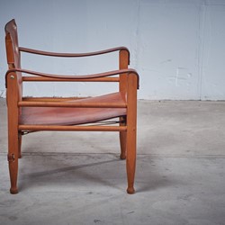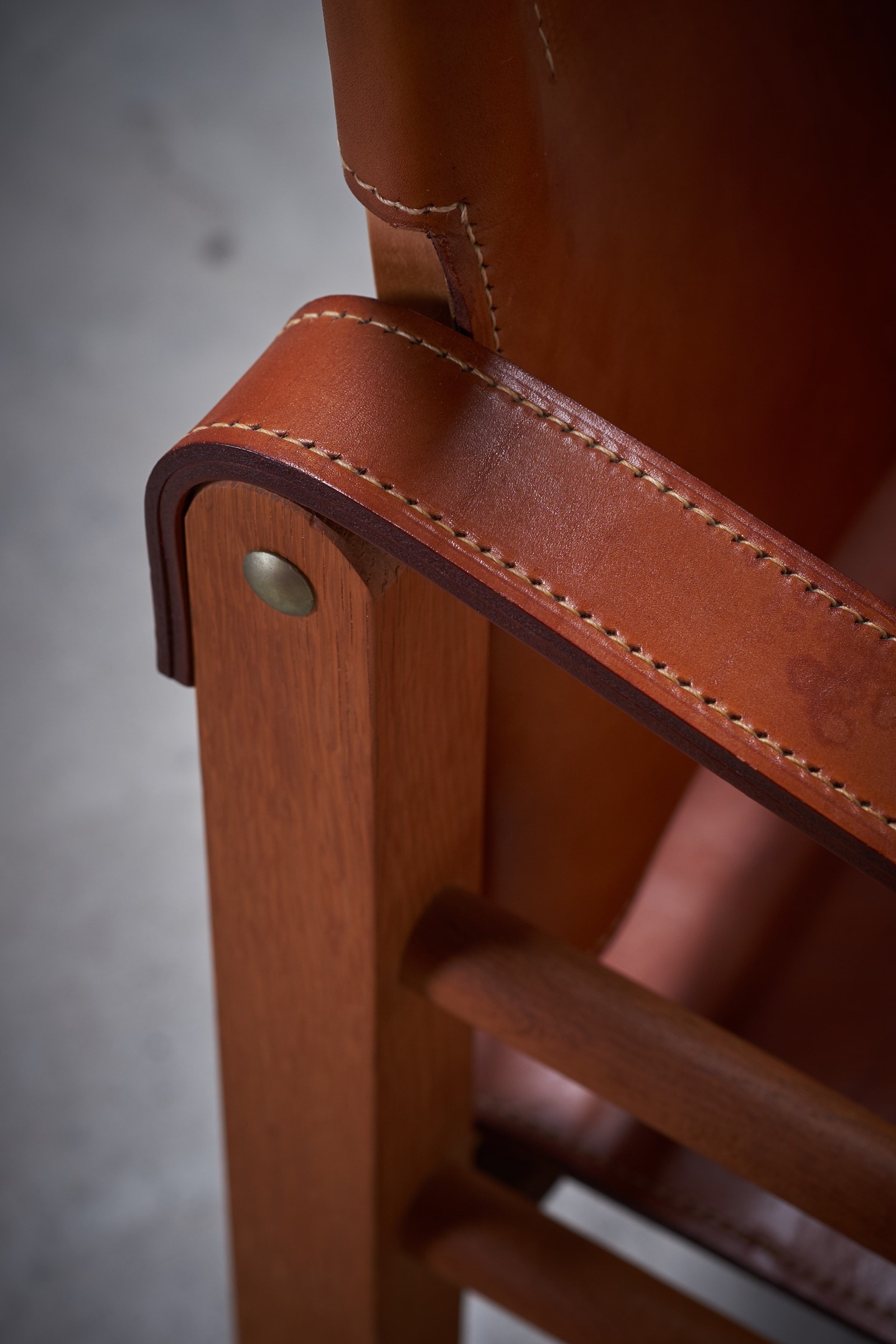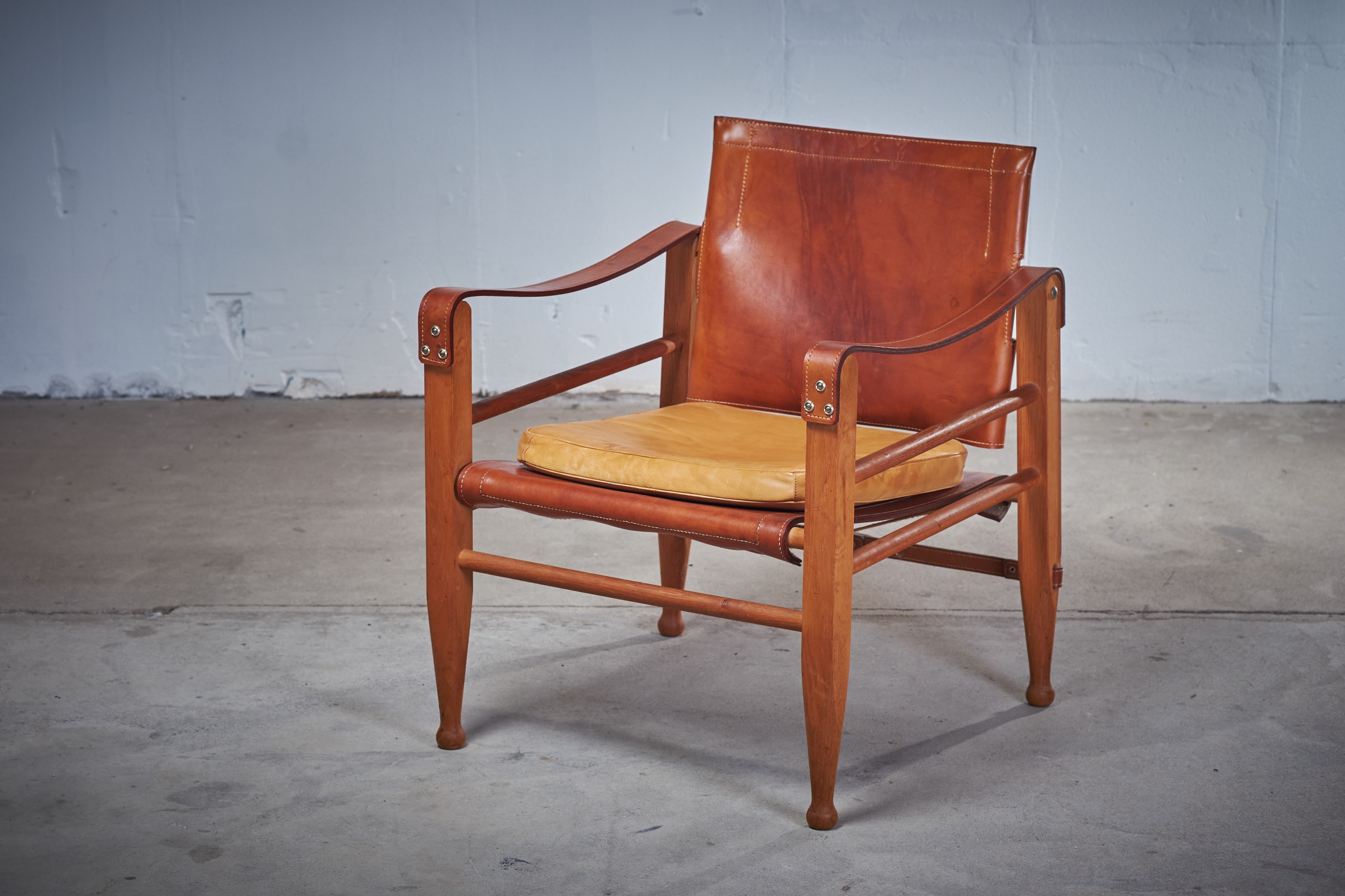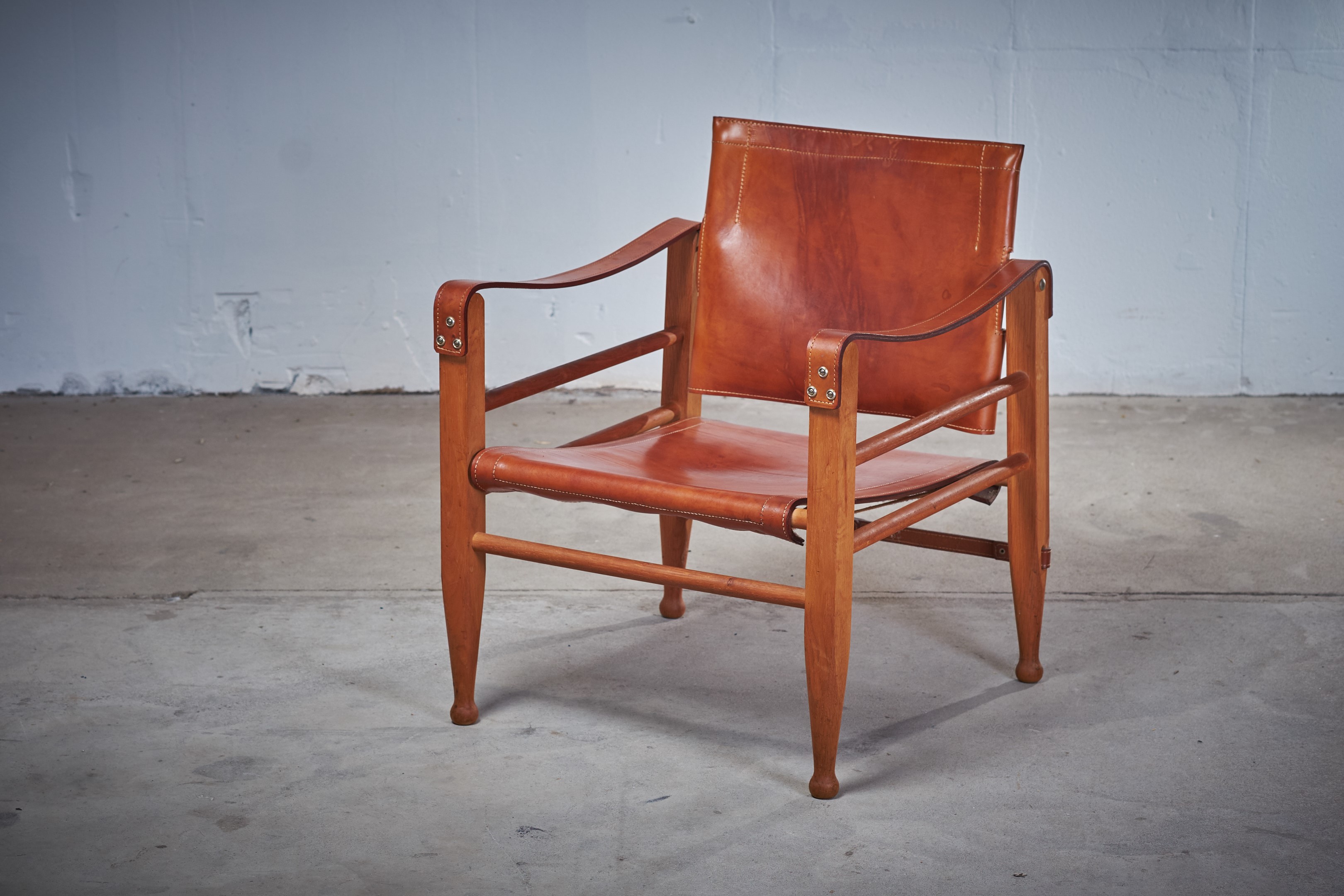 Safari chair by Aage Bruun and Son, Denmark, in beechwood and tan / cognac natural leather.