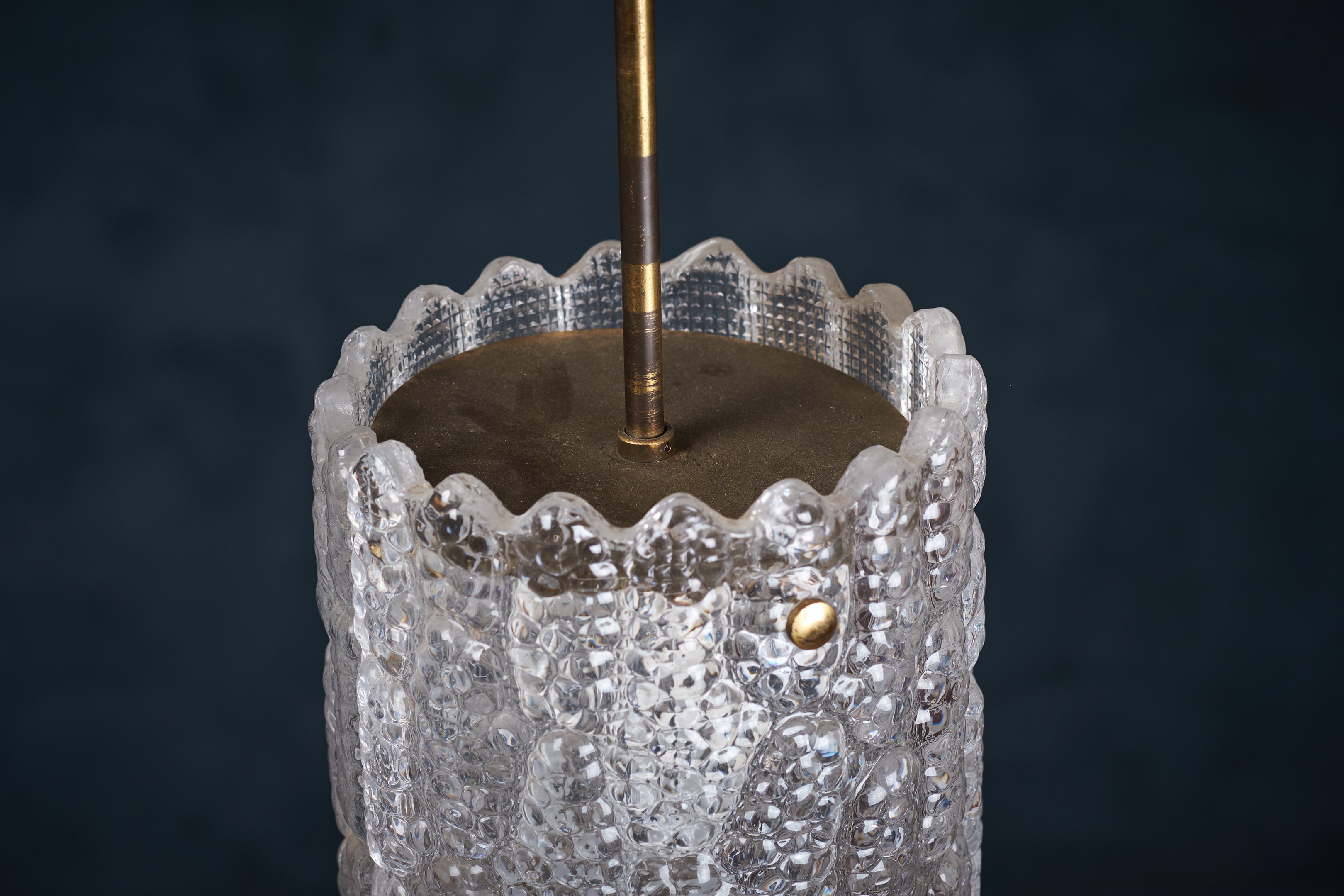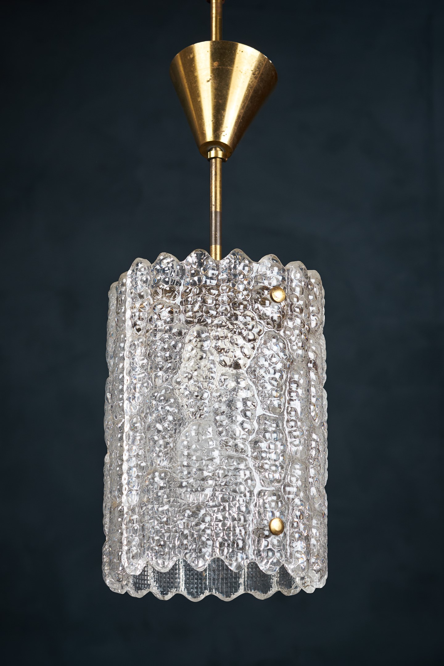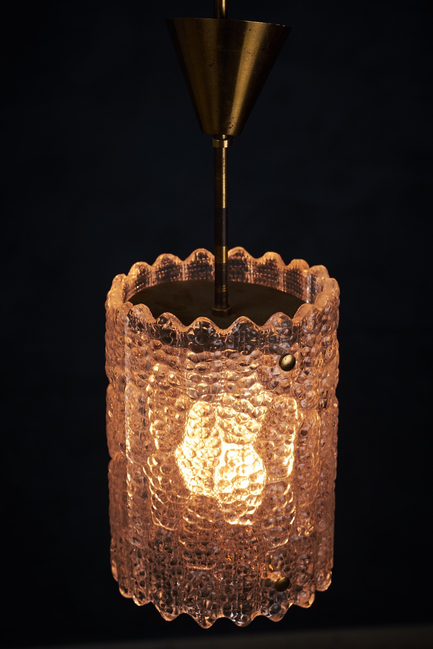 Pendant designed by Carl Fagerlund for Orrefors Sweden, 1960s. This stunning lamp is made of brass with crystal glass as shade, which provides a nice a warm light. The lamp is in a very good condition with no chips in the glass.