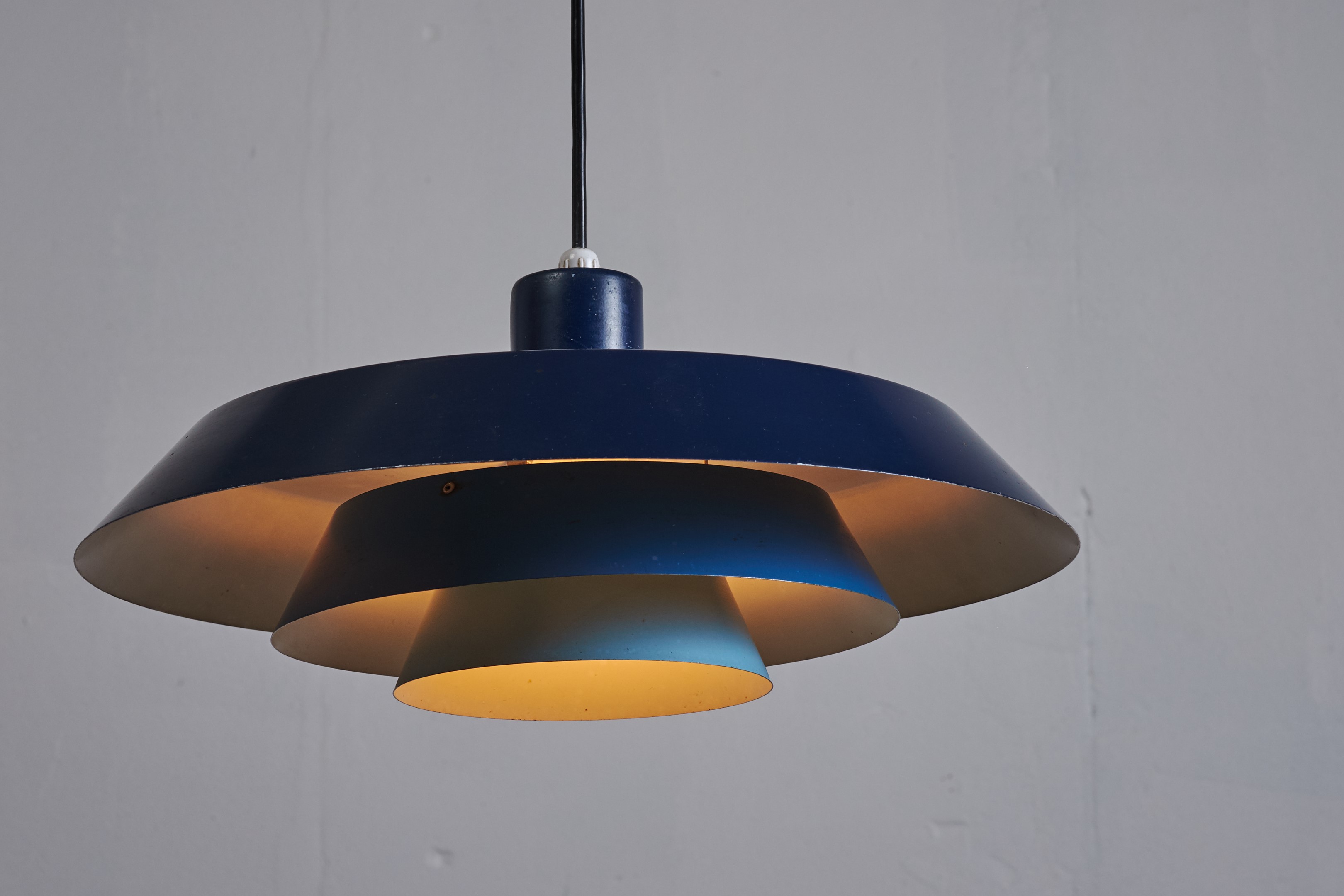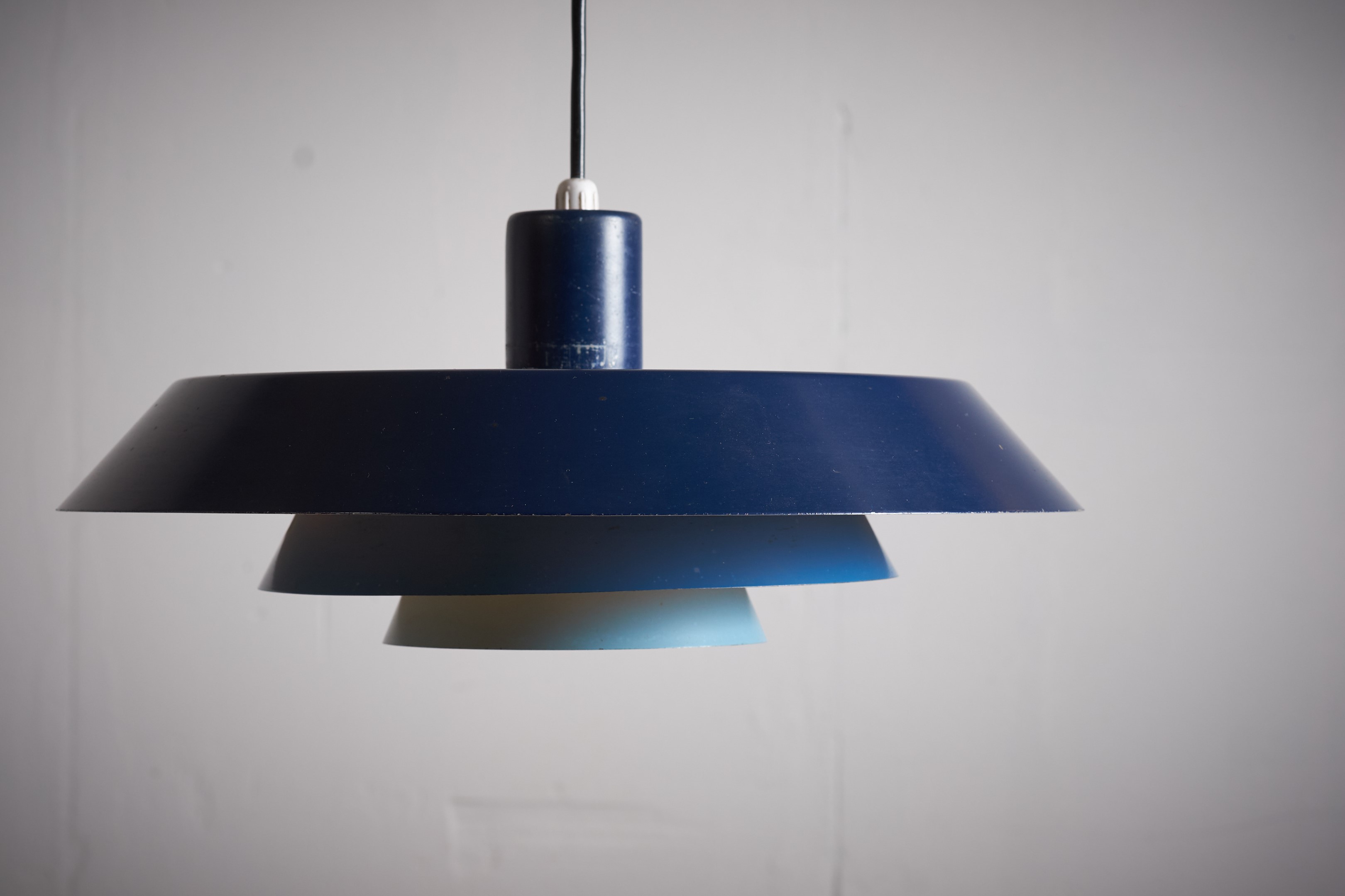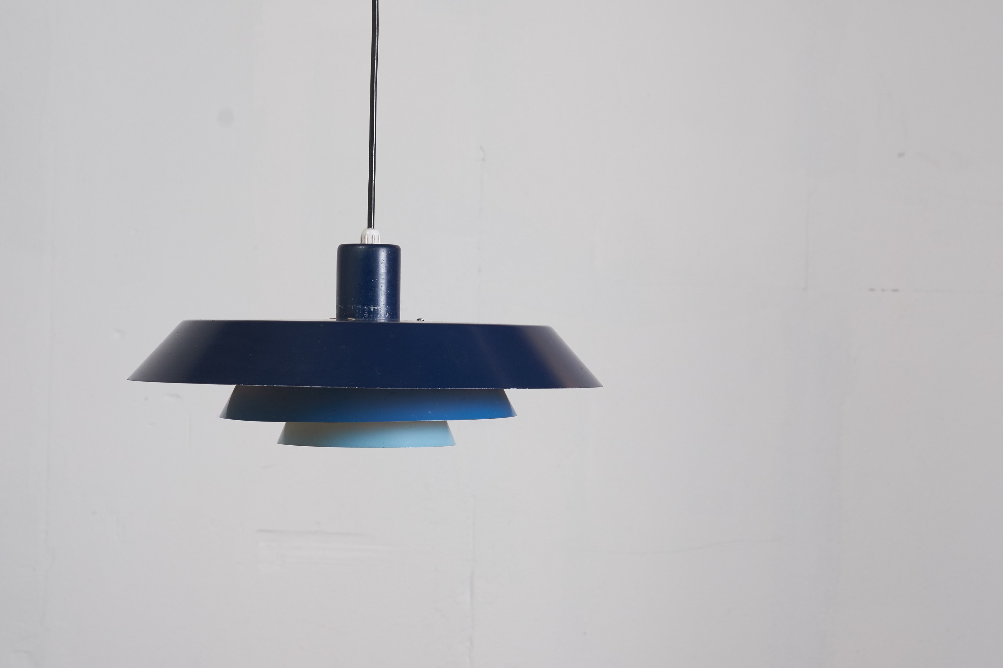 Bent Karlby designed three versions of Troika, each with three shades of the same color, a yellow, brown and blue one. We are lucky to have the blue and yellow version in our collection.