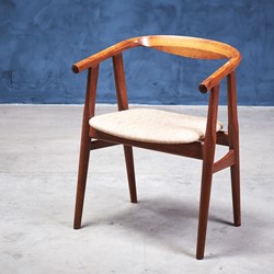 Set of six dining room chairs, model GE525, designed by Hans J. Wegner and manufactured by GETAMA in the 1960s. The chairs are in 'smoked' oak and upholstered in light fabric. The chairs are in great vintage condition.