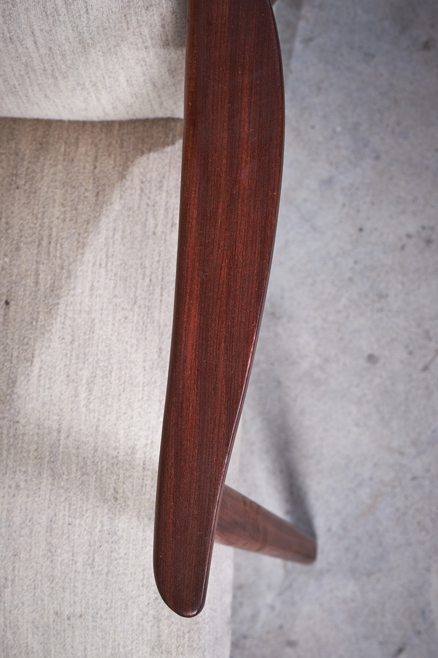 Danish modern, 1960s, easy chair with a solid teak frame, upholstered in white fabric. Very simple, light and elegant chair with a great seating comfort. This beautiful chair would be a great addition to any modern environment.