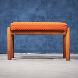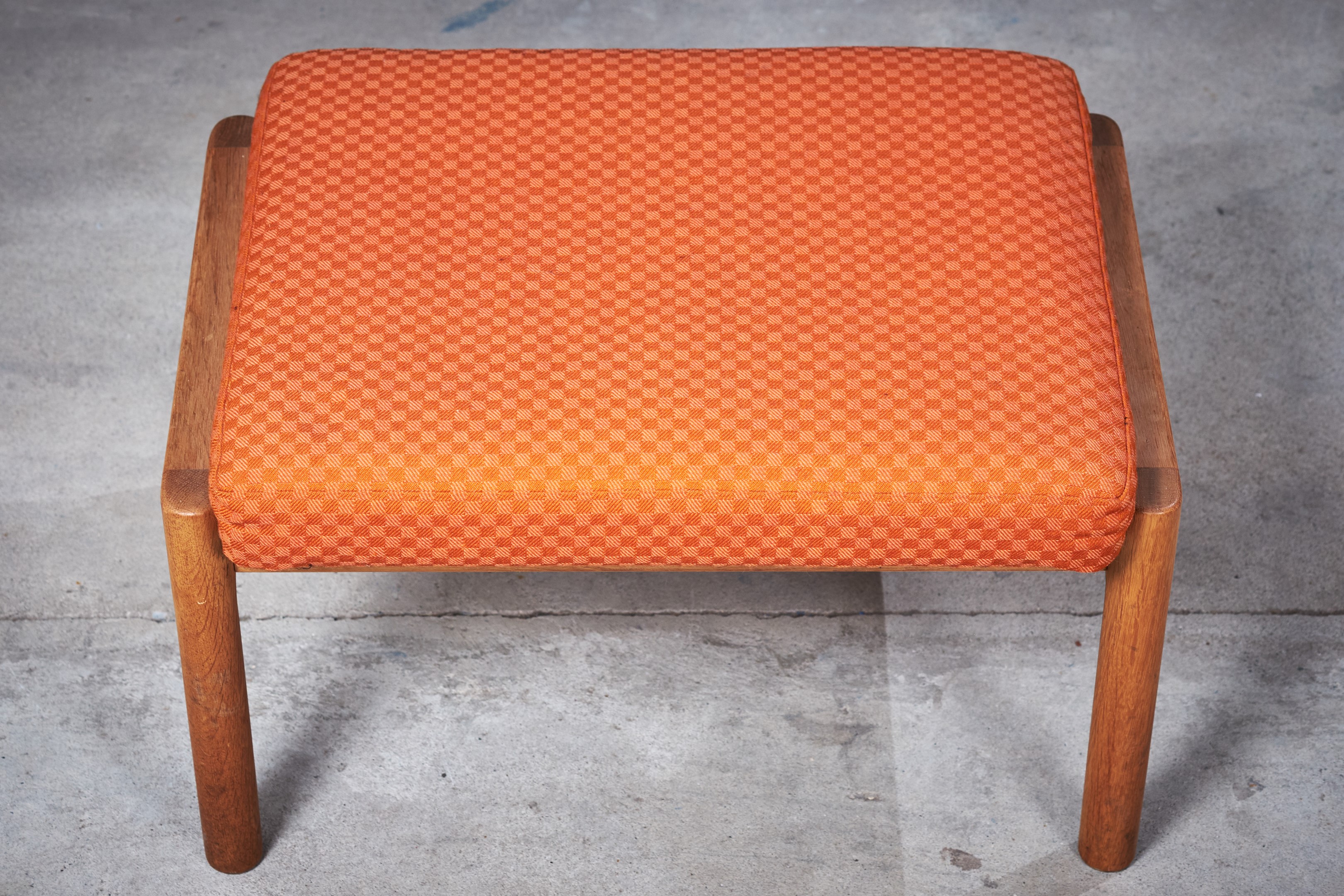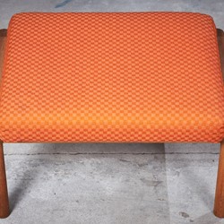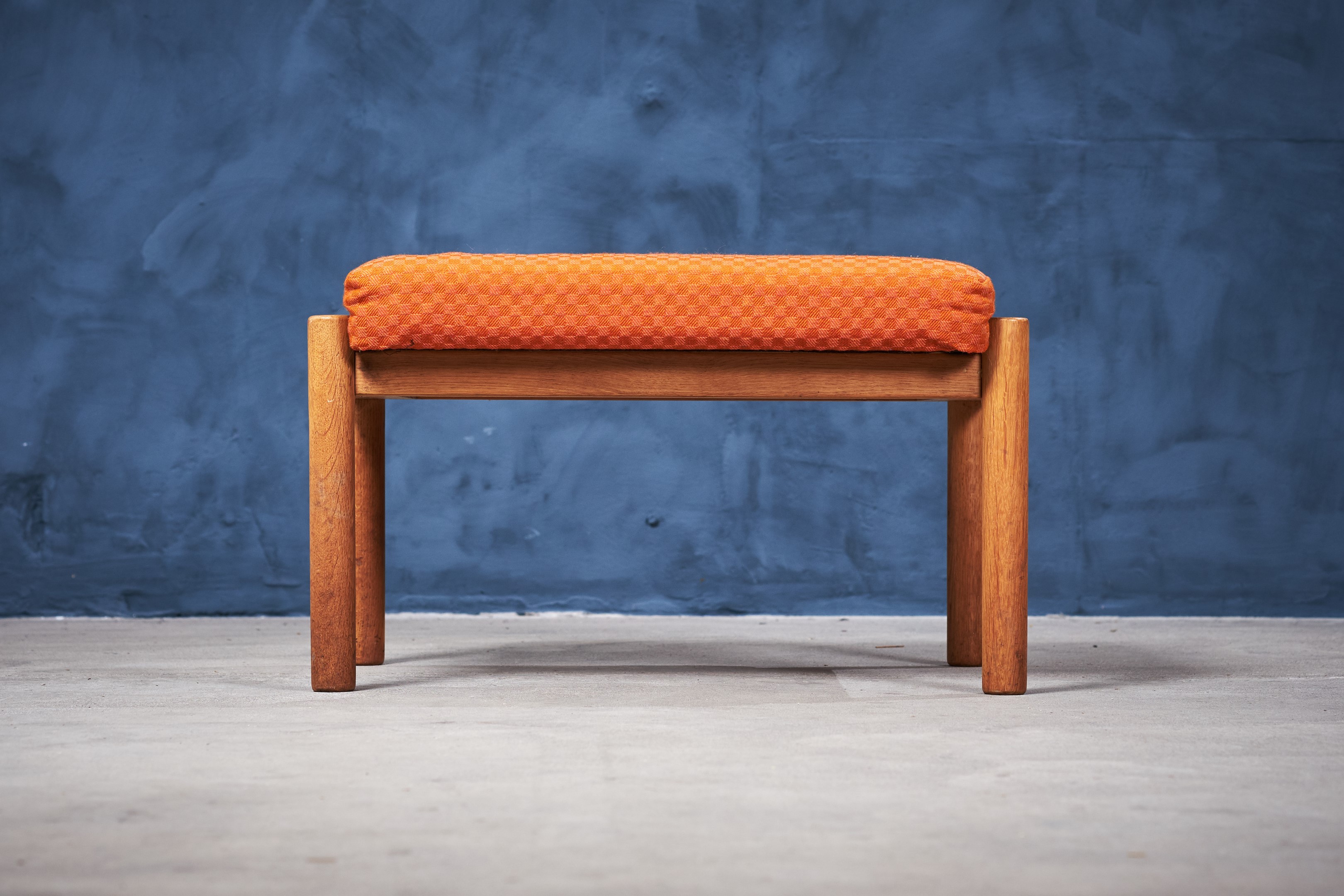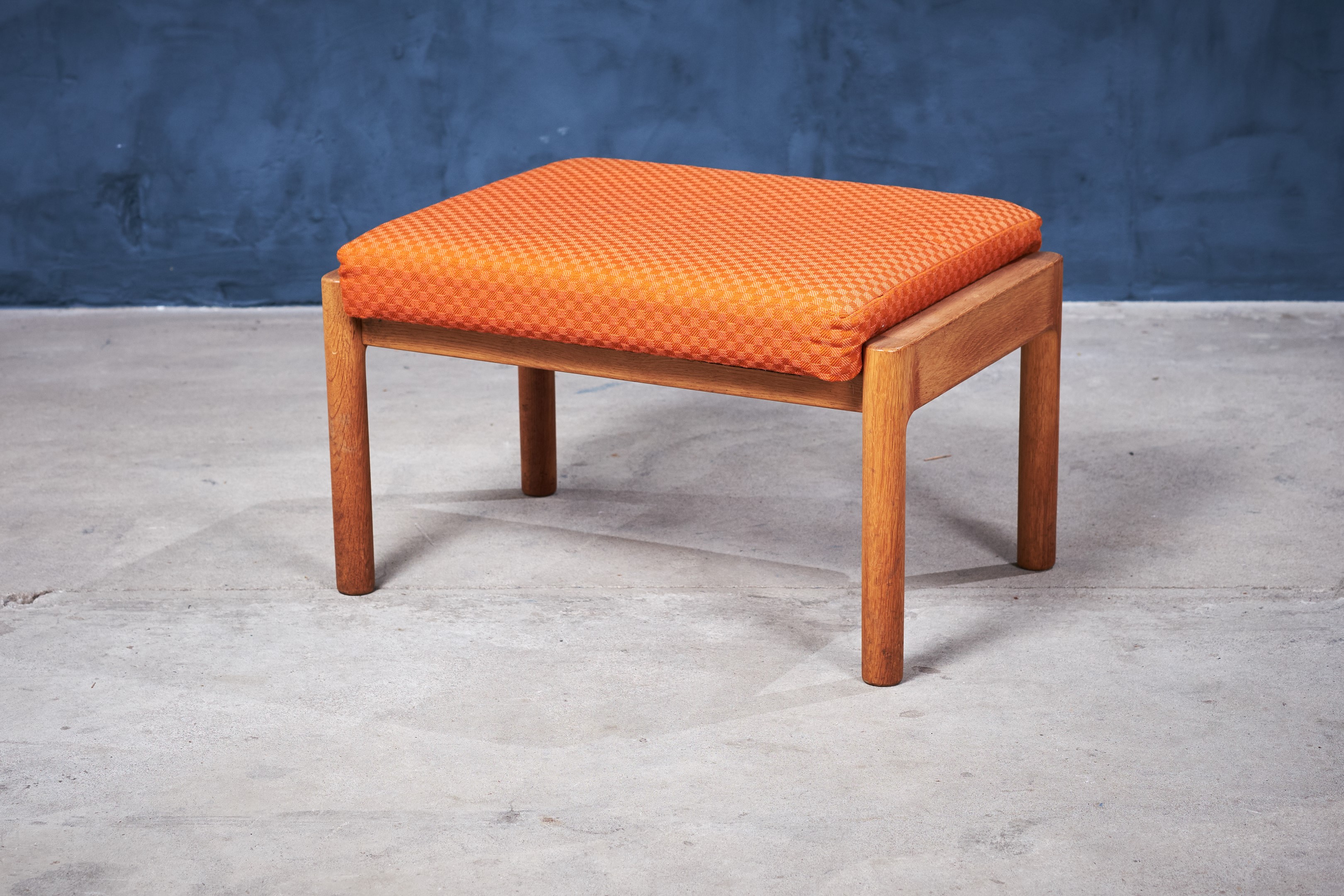 Kurt Østervig stool in solid oak with orange quality fabric in good vintage condition. The stool is made in the 60s era of Danish design. This beautiful stool would be a great addition to any modern environment.