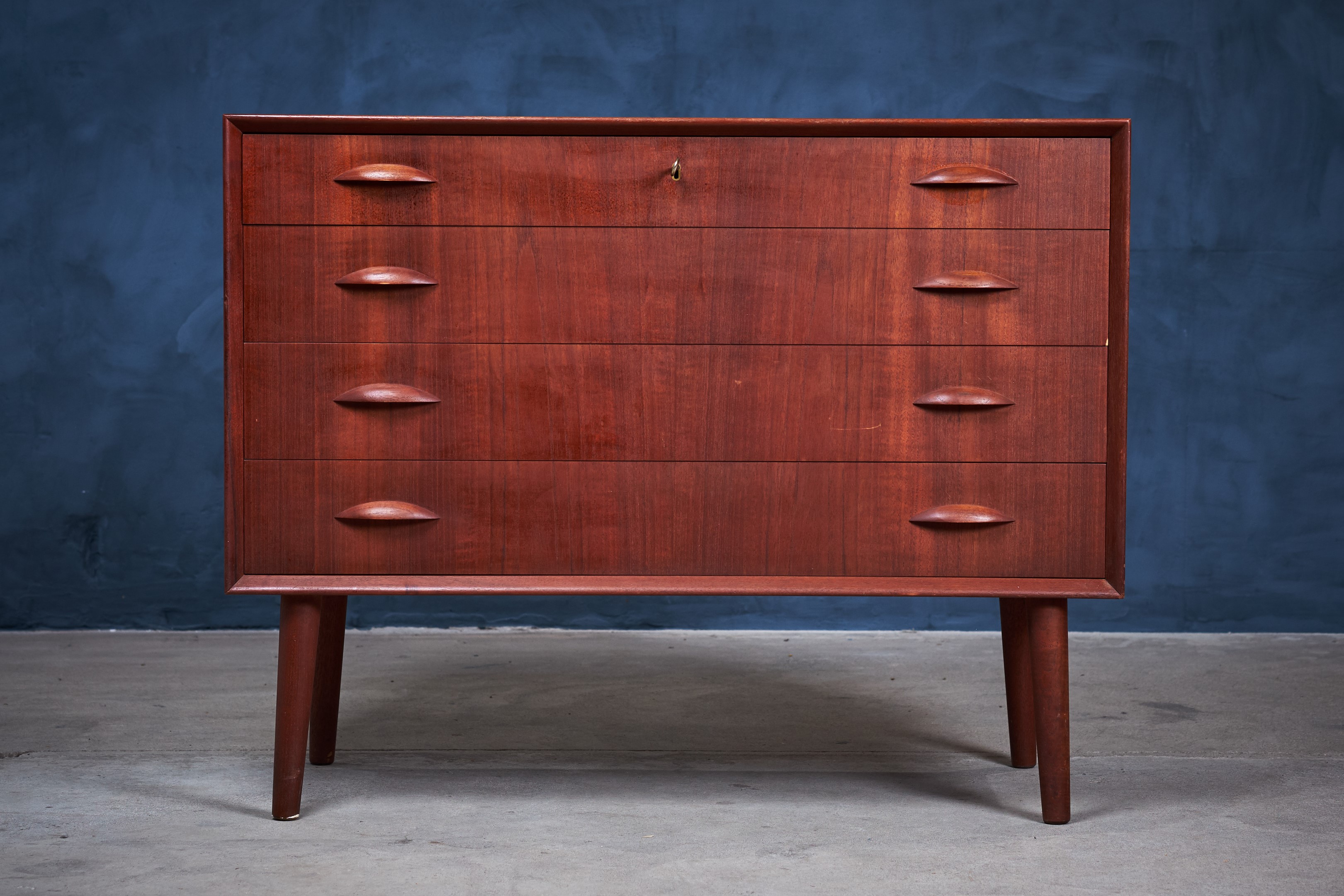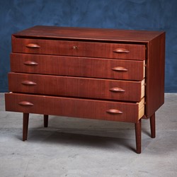 Beautiful chest of drawers in teak by Danish designer Kai Kristiansen from the 1960s. This beauty consist four big drawers which has great storage room, but it still is in a light and elegant design. It is in good vintage condition with a little patina consistent with age and use.