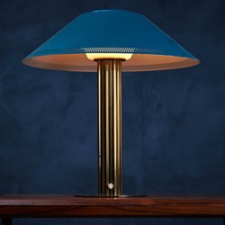 Beautiful and speciel table lamp in brass, glass and a beautiful green shade. The lamp provides great light and would suit almost any desk, this beauty will be a great addition to any modern environment.
