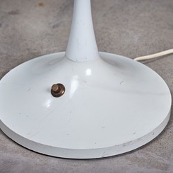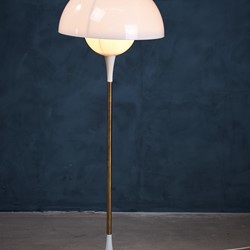 Floor lamp of brass, white-lacquered metal and plastic shade by LYFA (Denmark) 1960s