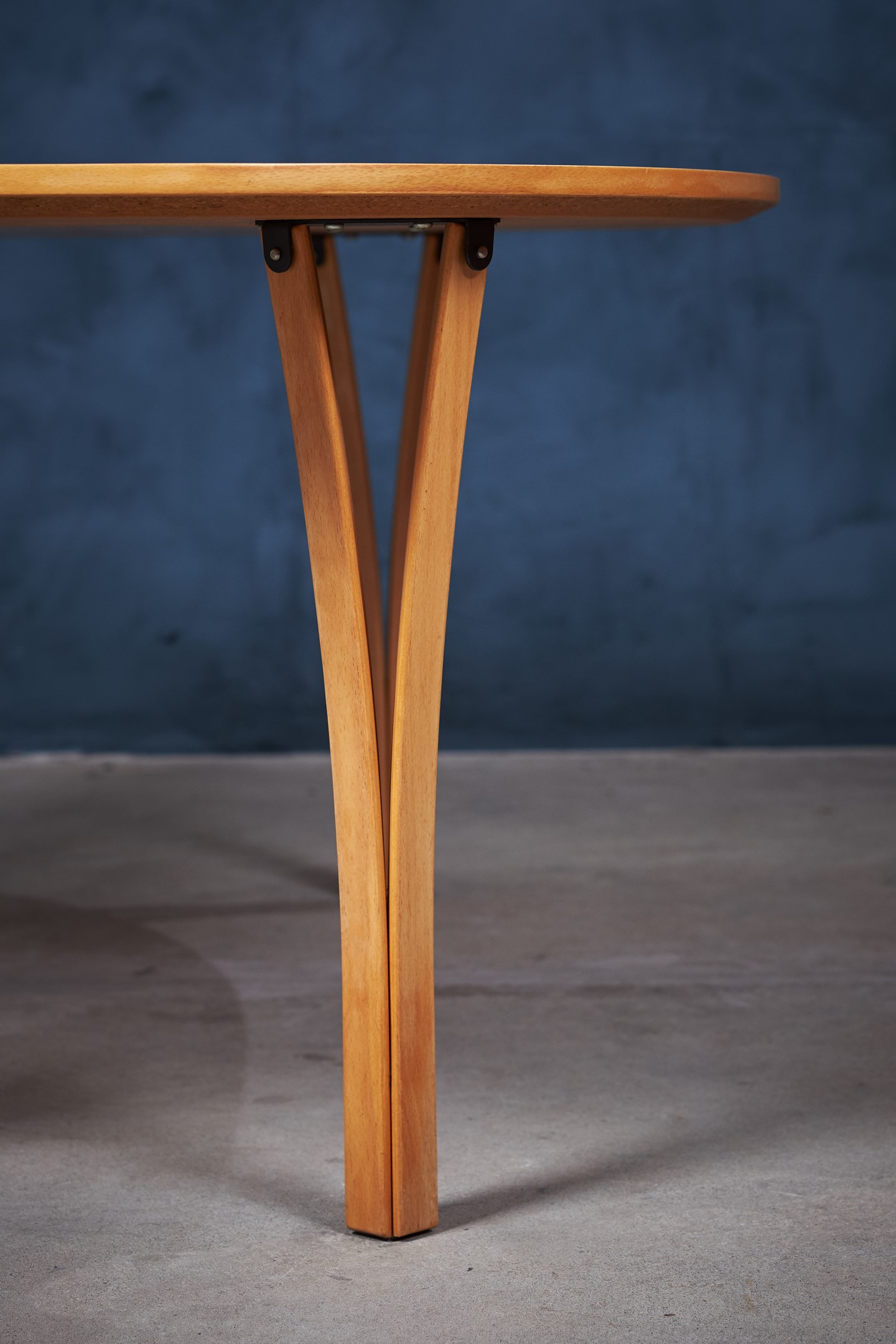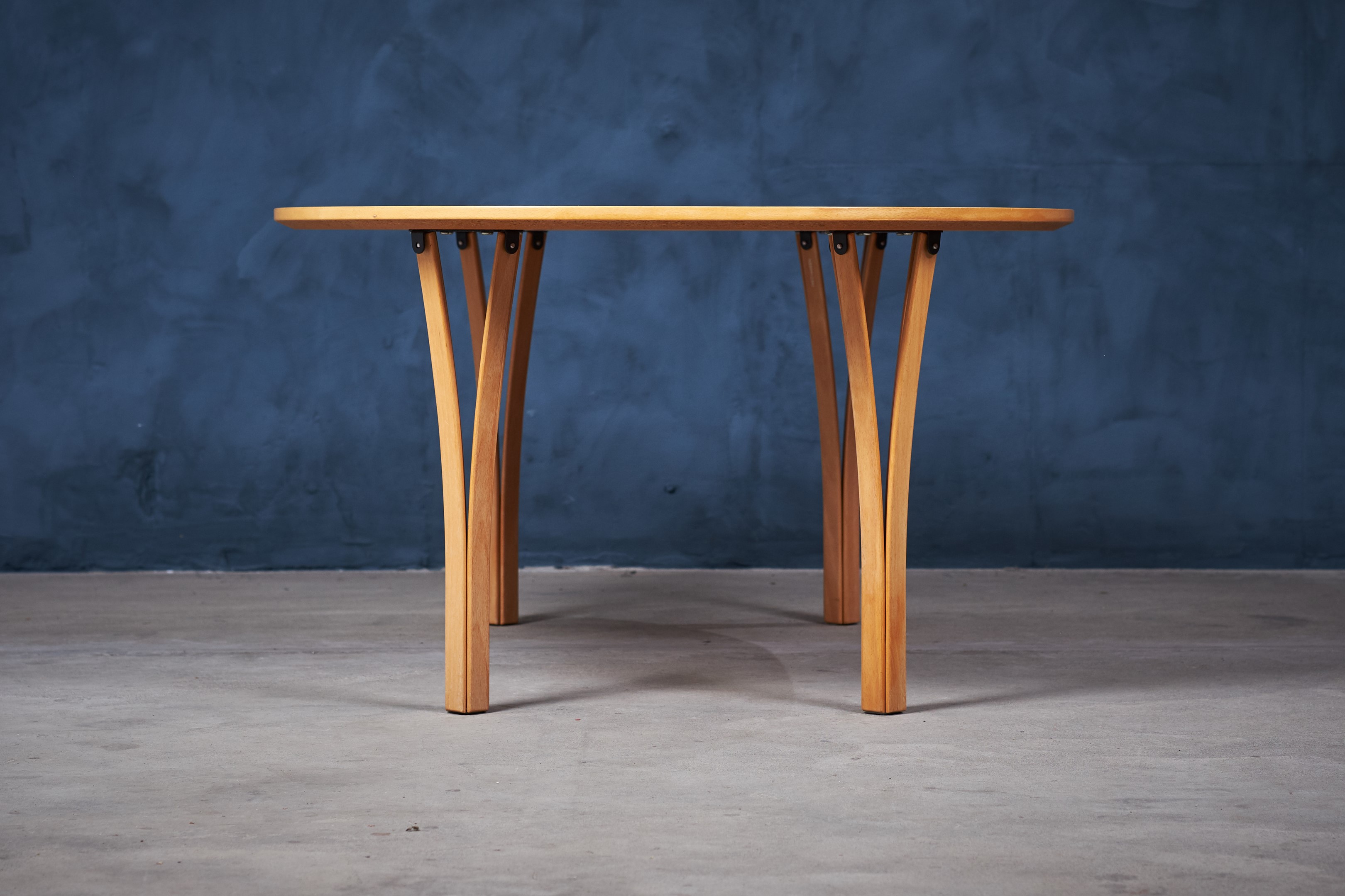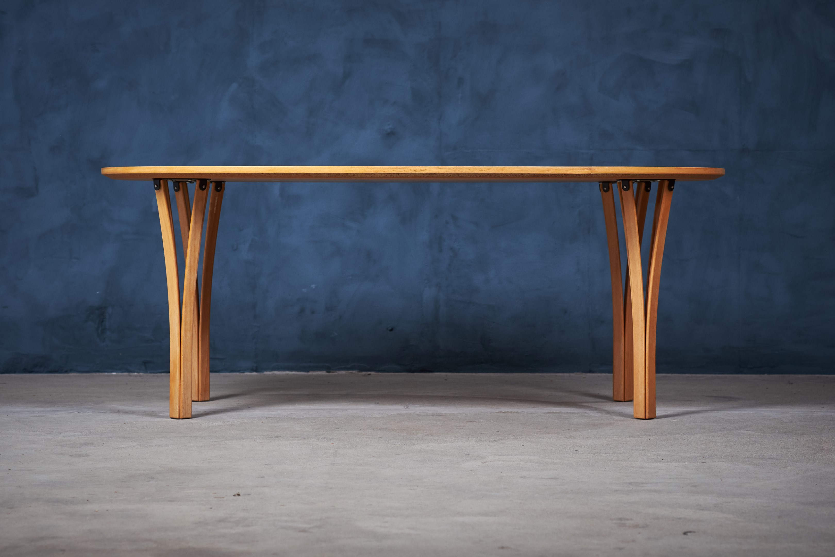 Super Ellipse table designed by Piet Hein and Bruno Mathsson for Fritz Hansen. The table is made of laminated beech wood with solid beech legs. The legs tighten and slide out of their location points in each corner, which means that the table can be easily removed if it is required for carrying or storing. Good quality and a beautiful coffee table there would be a great addition to any modern environment. In very good condition.