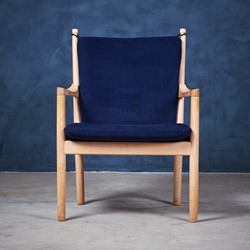 This armchair, model 1788, was designed by by Hans J. Wegner. It comes in beech and has been reupholstered with 'Gabriel' fabric, color code 00040, from Comfort. The type of fabric is very easy to clean with a wet cloth.