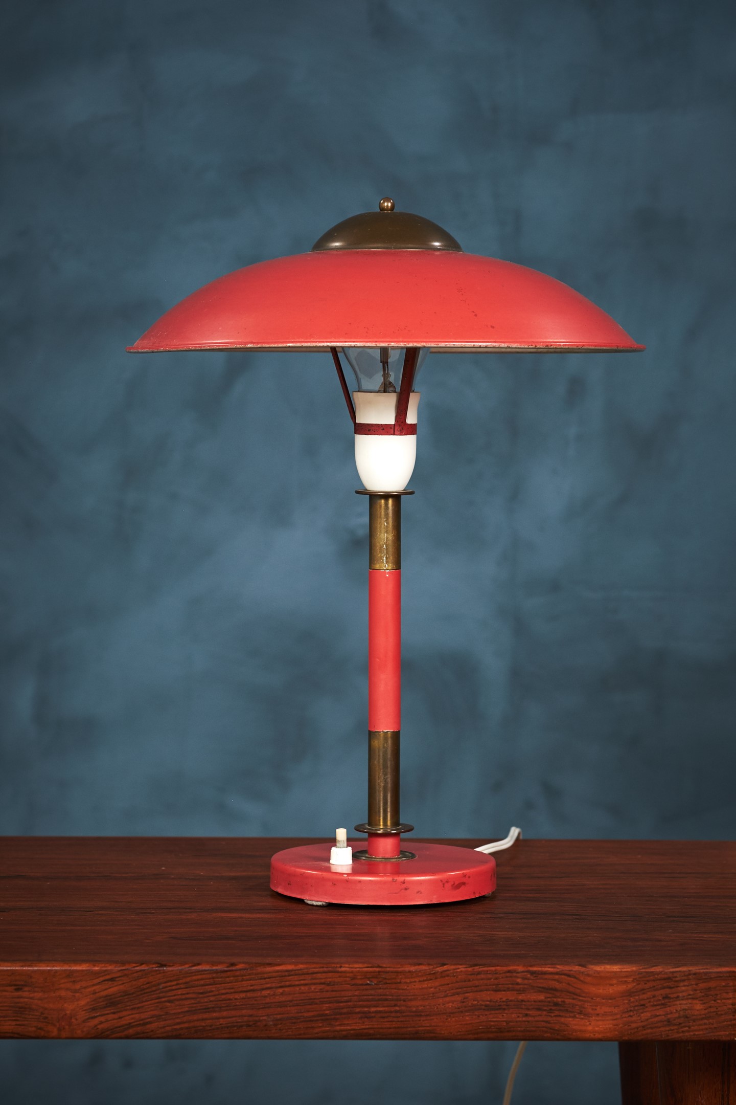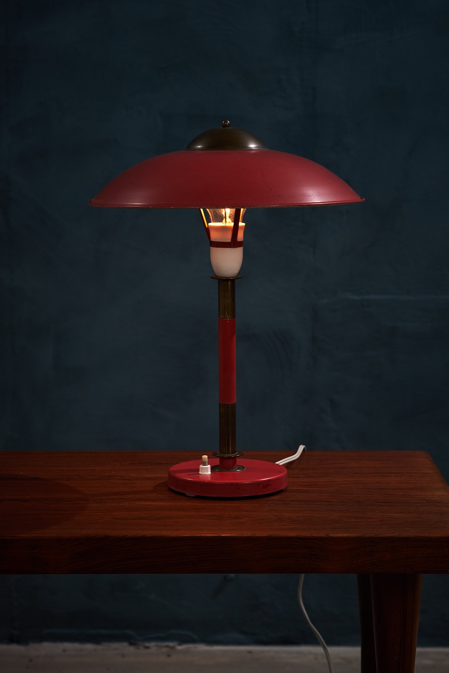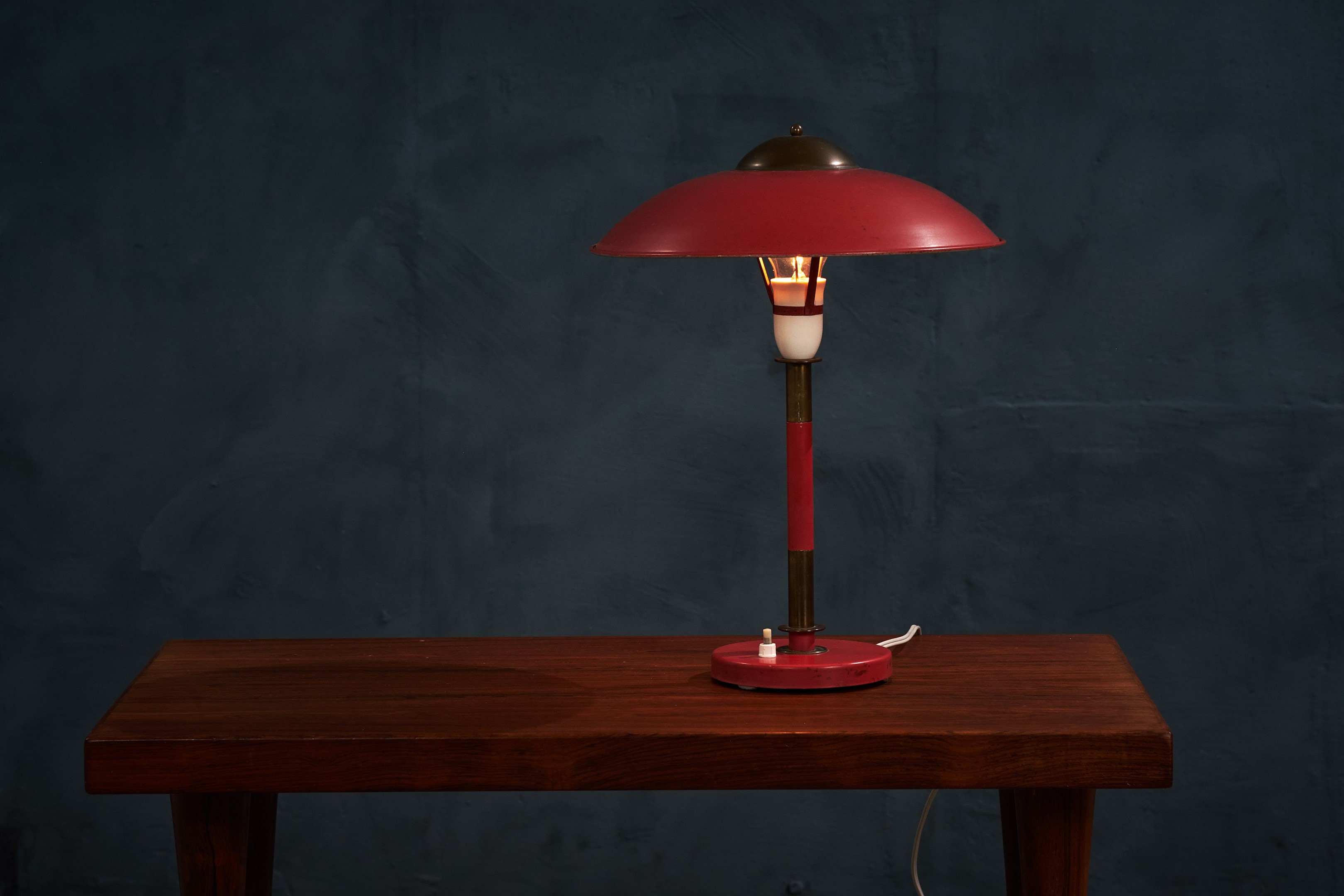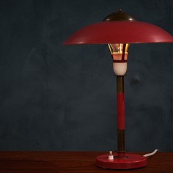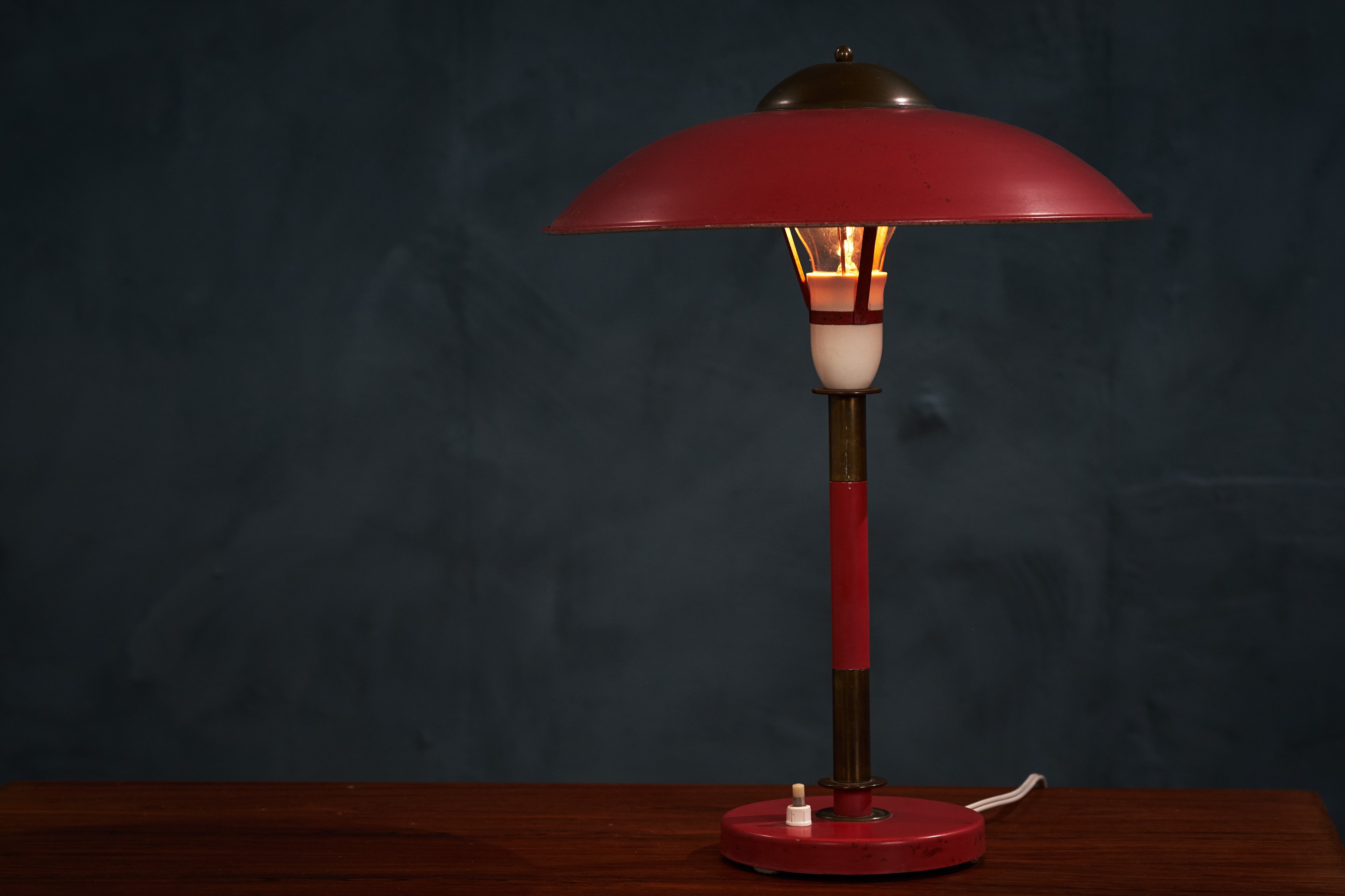 Beautiful table lamp from the 60s made in Denmark. Attributed to Fog & Mørup. The lamp provides a great light and would make an great addition to any modern environment, whether its the office or your living room. The lamp is in good vintage condition with no dents or big scratches.